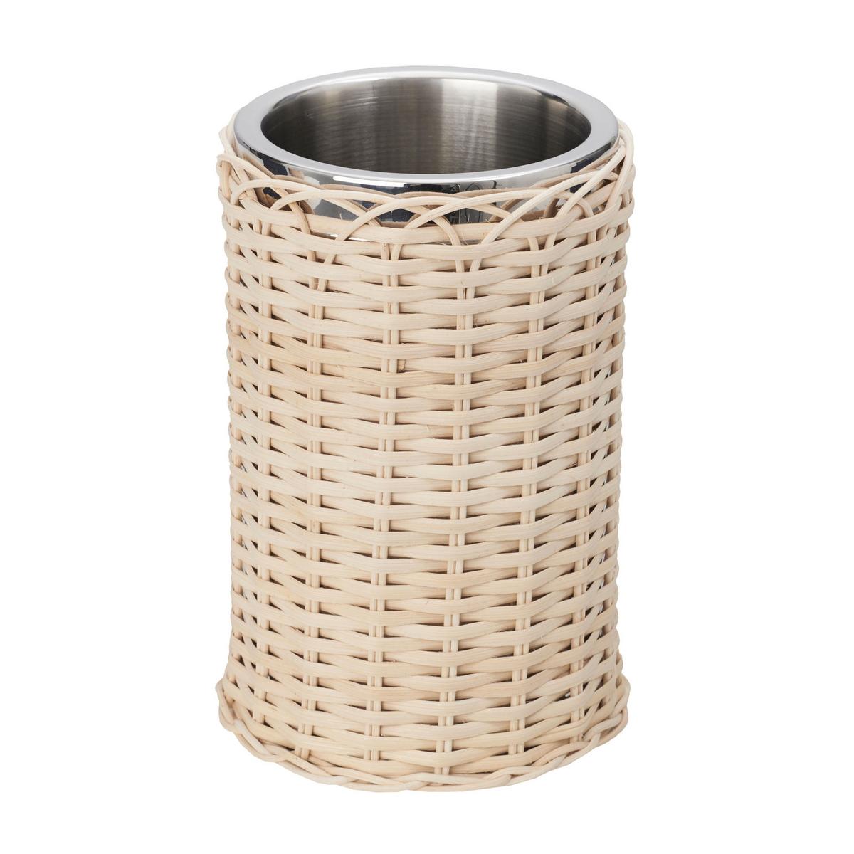 Die stylischen Weinkühler und Eisbehälter "Menton" von Pigment sind die perfekten Accessoires für den Sommer. Die Gefäße aus verchromtem Messing sind mit handgewebtem Rattan umhüllt. Der doppelwandige Innenraum und der Deckel sorgen dafür, dass das Eis lange seine Form behält und der Wein kühl bleibt.