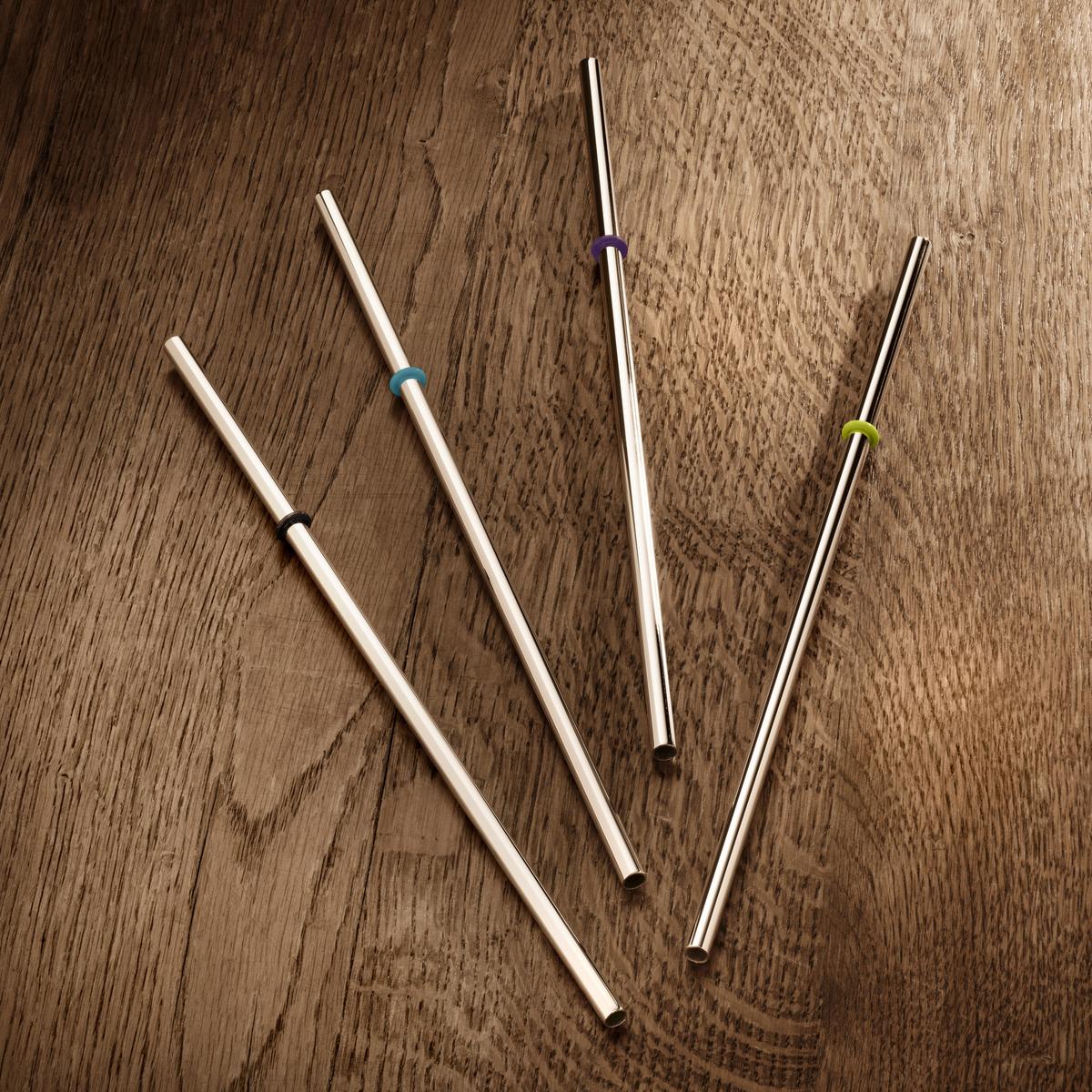 Die Trinkhalme "Colours" bieten jedoch nicht nur eine spektakuläre Optik in Silber, sie sind auch eine wunderbare Alternative zu den Wegwerfstrohhalmen aus Plastik, die ab dem Jahr 2021 in der gesamten Europäischen Gemeinschaft verboten sein werden. So schützen Sie mit diesen wiederverwendbaren Baraccessoires gleichzeitig die Umwelt.
