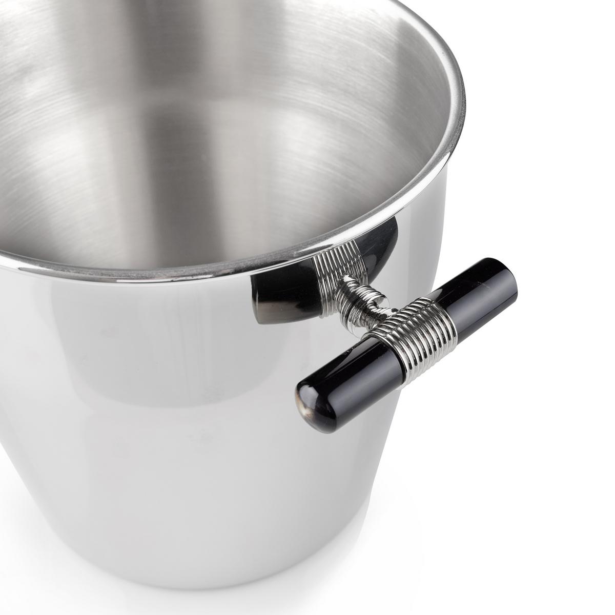 Der Champagnerkühler "Artica" von Arcahorn zeichnet sich durch ein zeitloses und zugleich anspruchsvolles Design aus und ist eine Kombination aus Stil und Funktionalität. Der aus Edelstahl gefertigte Eimer kann eine Flasche Wein oder Champagner in der richtigen Serviertemperatur aufbewahren. Die Details aus Horn, die die Griffe und den Boden zieren, verleihen dem Design einen einzigartigen Stil. Ausgestattet mit einem tragbaren Ständer, kann der Champagnerkühler "Artica" überall platziert werden wo man ihn benötigt, ob zu Hause oder im Restaurant.