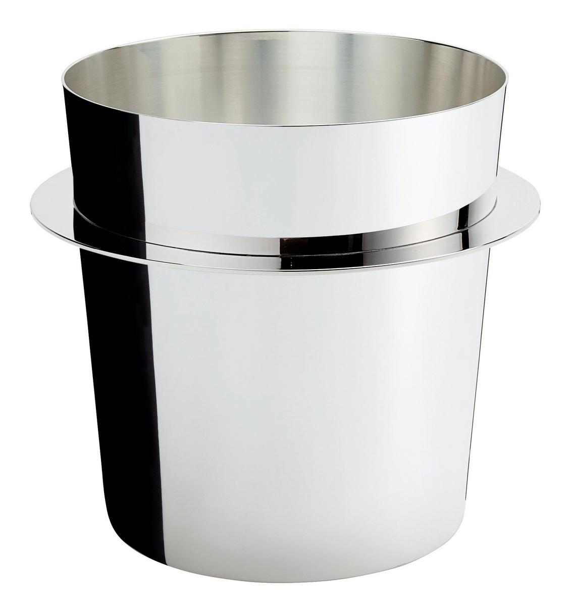 Neue Linie von Ercuis im zeitlos-klassischen Design: Die umlaufende Borte, die auch als Griff dient, ist dem Ring nachempfunden, der den Saturn umgibt. Zu dem versilberten Ensemble gehören Champagnerkühler und Eisbehälter. Der Eisbehälter "Saturn" von Ercuis macht auch als Vase eine gute Figur.