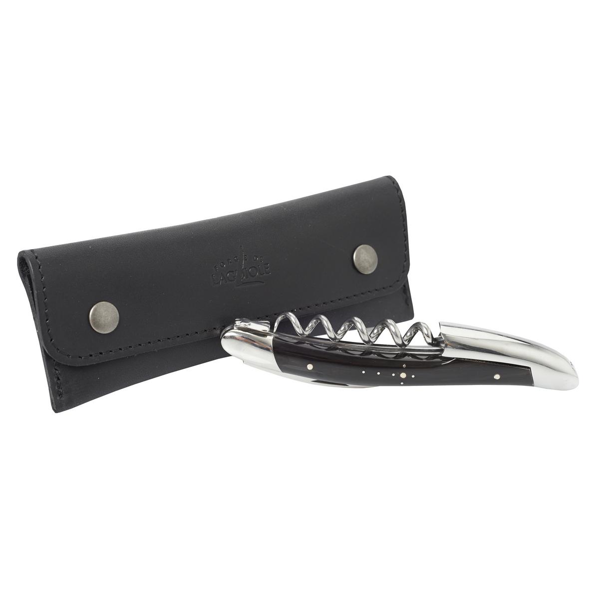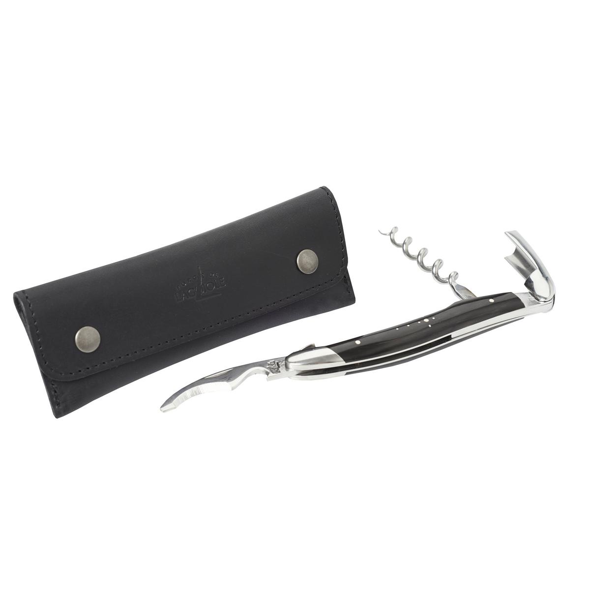 Das Sommeliermesser "Horn" von Forge de Laguiole wird in einem schwarzen Lederetui geliefert und eignet sich auch wunderbar als Geschenk für Weinliebhaber.