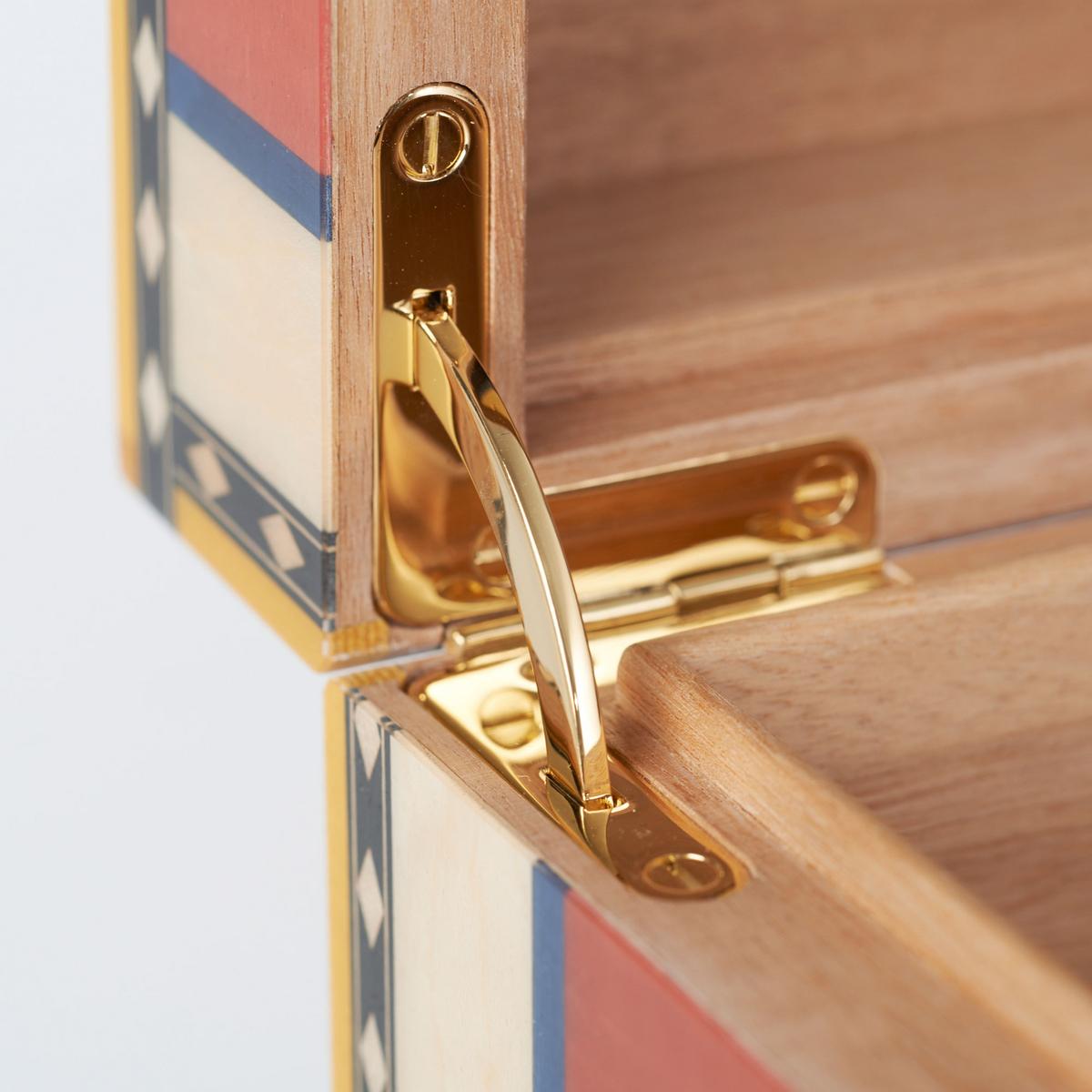 Der Humidor "Alba" von Elie Bleu ist aus dem exklusiven Holz des afrikanischen Maulbeer-Feigenbaumes (= Sykomore) gefertigt, tut aber so, als wäre er eine übliche Zigarrenschachtel. An einer Seite ist sogar ein vermeintliches Klebeetikett aufgemalt. Das ist Sinnestäuschung auf allerhöchstem Niveau.