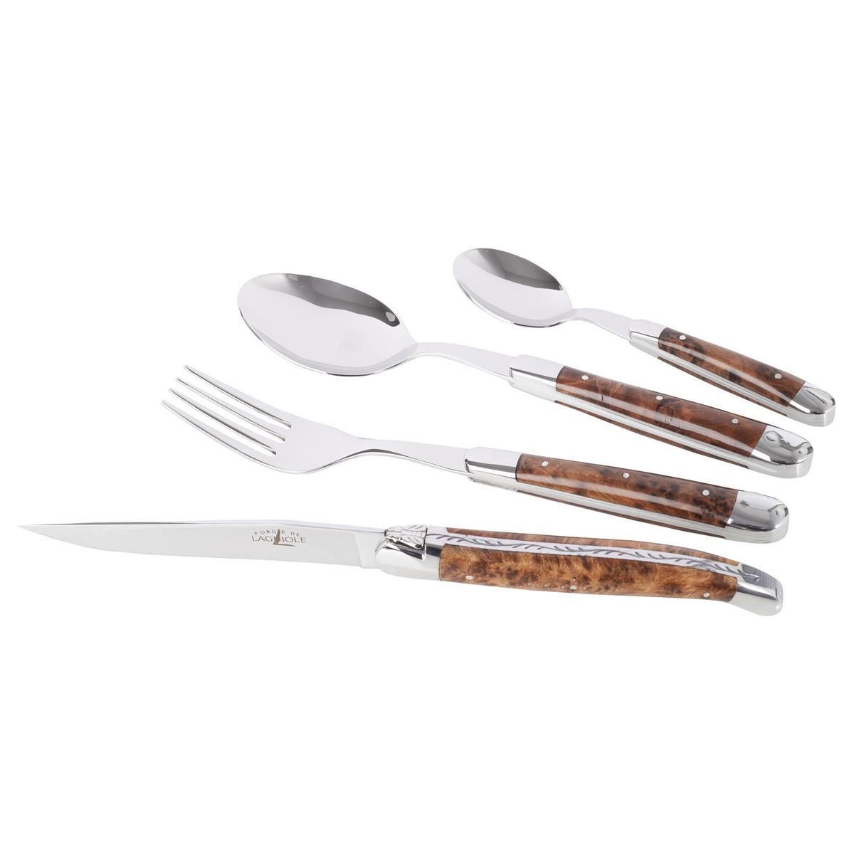 24-tlg. Thuja-Holzbesteck Set: 6 x Tafellöffel, -gabel, -messer und Kaffeelöffel von Forge de Laguiole