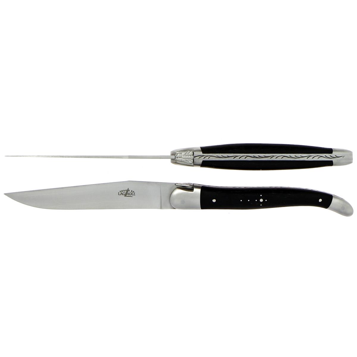 Tafel-/Steakmesser mit Griff aus Ebenholz, satiniert von Forge de Laguiole