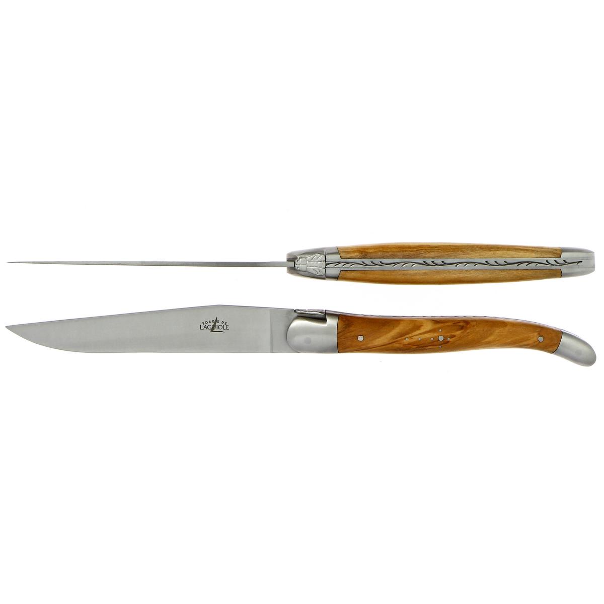Tafel-/Steakmesser mit Griff aus Olivenholz, satiniert von Forge de Laguiole