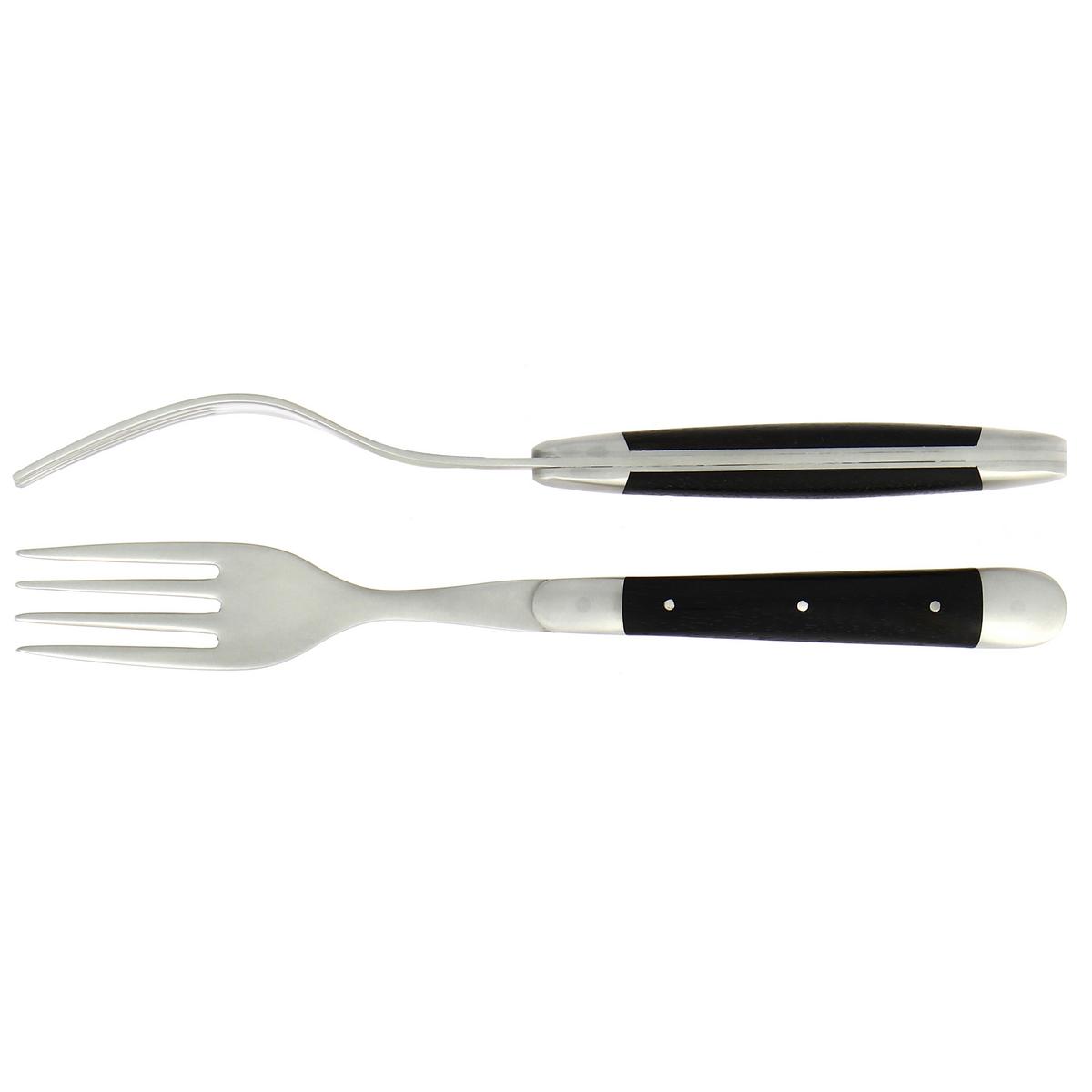 "Aufschneider" mit Stil: Die französische Messerschmiede Forge de Laguiole adelt diese Steakmesser bzw. Tafelmesser und -gabeln durch verschiedene Griffe aus wertvollen Edelhölzern. Forge de Laguiole ist für seine aufwendig geschmiedeten, qualitativ exzellenten Klingen und vielfältigen Designs berühmt.