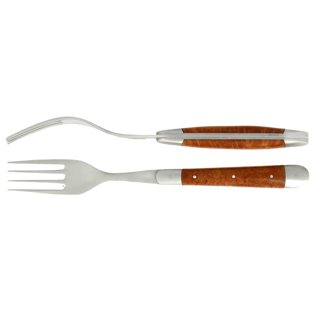 Forge de Laguiole kombiniert wahlweise Olivenholz, Erika (Bruyere), Wacholder, Amourette, Rosenholz, Ebenholz und Thuja mit besonders glatten Klingen aus dem Spezialstahl T12. Die Edelholzgriffe gewinnen durch Beschläge aus satiniertem, mattem Edelstahl eine sehr harmonische Optik.