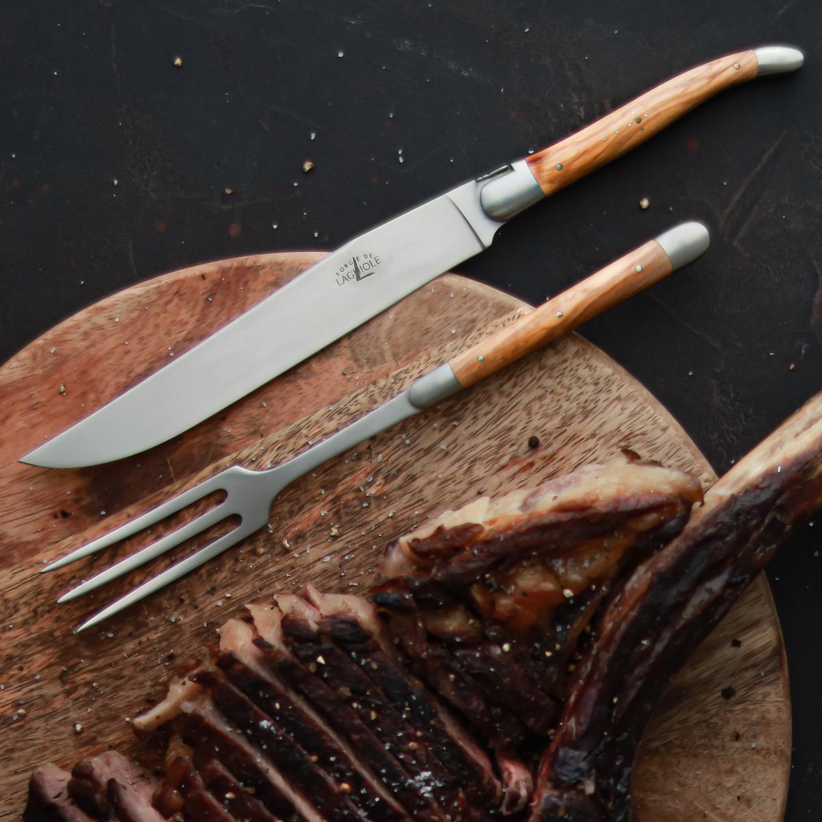 Tranchierbesteck "Olivenholz", satiniert von Forge de Laguiole