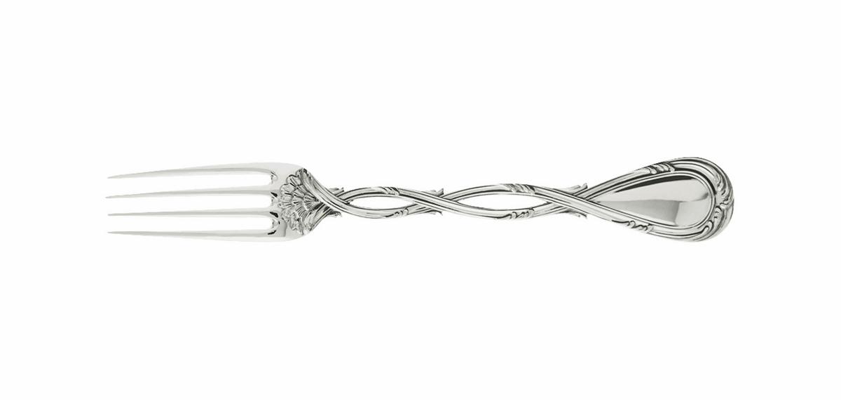 Das Puiforcat Model mit den geschwungenen und floral verzierten Griffen wurde bereits 1775 von Nicolas Cornu entworfen und war das Lieblingsbesteck von Ludwig XV. und Madame Pompadours.