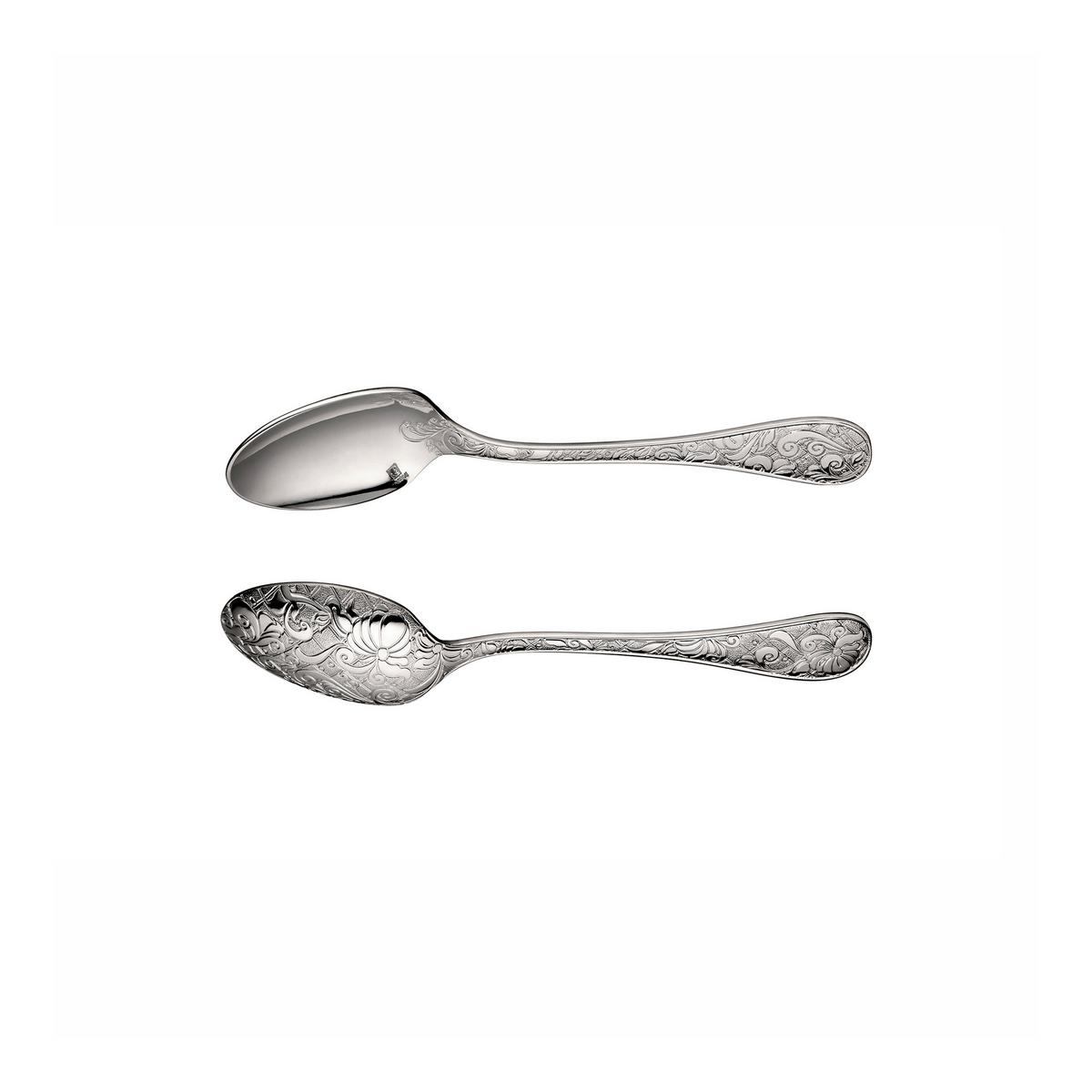 Das versilberte Besteck "Jardin d'Eden" von Christofle entführt Sie in einen verschlungenen Paradiesgarten aus Blättern, Blumen und Schnörkeln. Großflächig präsentiert auf fast der gesamten Fläche der Besteckteile.