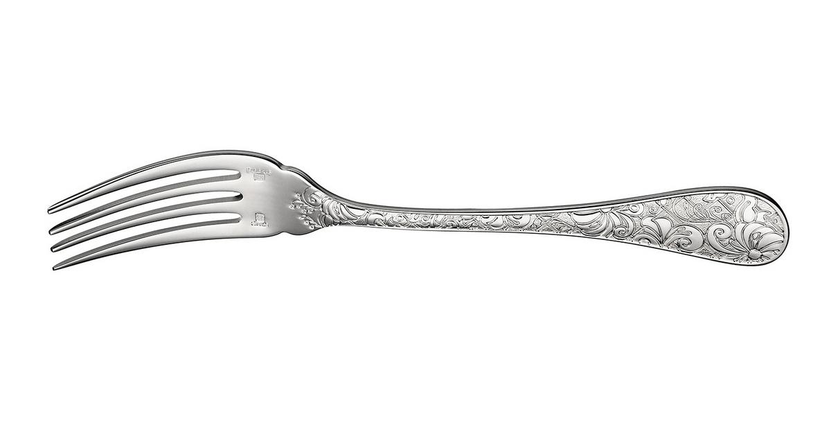 Das versilberte Besteck "Jardin d'Eden" von Christofle entführt Sie in einen verschlungenen Paradiesgarten aus Blättern, Blumen und Schnörkeln. Großflächig präsentiert auf fast der gesamten Fläche der Besteckteile.