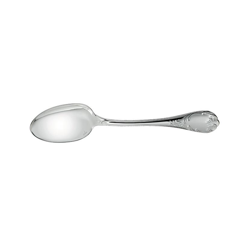 Dem Rocaille-Stil treu gehört "Marly" zu den am reichsten verzierten Besteckmodellen von Christofle. Einladende Kurven liegen bequem in der Hand; grazile Akanthus-Blätter umranken dynamisch Stiele und Griffe. Asymmetrische Muschelmotive setzen Akzente und geben dem Besteck seinen französischen Charakter. Löffel und Gabeln sind für das traditionelle Eindecken "à la française" mit dem Rücken nach oben gestaltet.