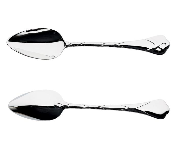 "Kreuzbanddekor war im 18. Jahrhundert beliebt. Die Neuinterpretation auf dem Kellengriff der Serie Paris von Ercuis passt perfekt zu weißem Geschirr."