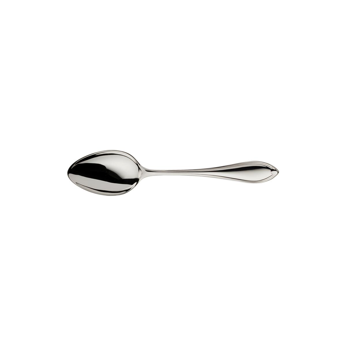 "Navette" bezeichnet einen spitzovalen Schliff bei Edelsteinen. Das versilberte Besteck von Robbe & Berking macht diesem Name alle Ehre, denn es besitzt einen sanft geschwungenen spitz zulaufenden Stiel mit einem plastischen Überwurf am Ende. Die Ausgewogenheit und Harmonie dieses Bestecks macht "Navette" von Robbe & Berking zu einem zeitlosen Meisterwerk der Silberschmiedekunst.