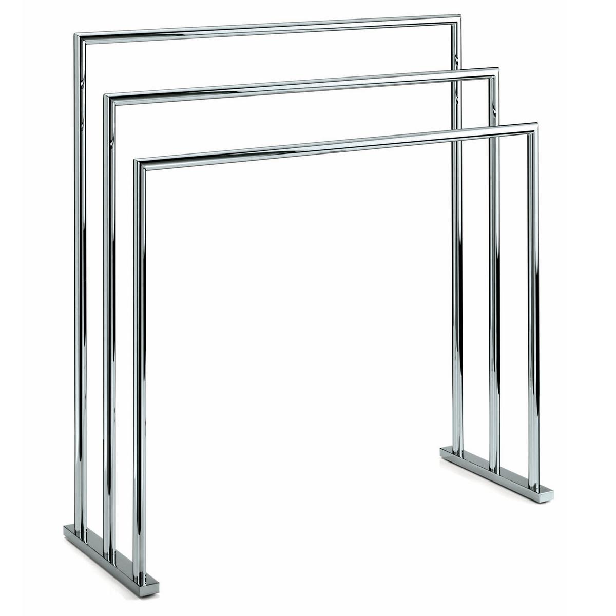 Der Handtuchständer "Steady III" von Decor Walther macht seinem Namen (steady = engl. stabil, sicher) alle Ehre: Mit seinen drei rechteckigen Bügeln, die Torbogenartig von einem Fuß zum nächsten laufen, hat er einen besonders sicheren Stand — und das ganz unabhängig davon, wie viele Handtücher er hält. Trotz aller Praktikabilität, setzt der Handtuchständer "Steady III" von Decor Walther auch auf Glamour und strahlt in hochglänzendem Chrom.