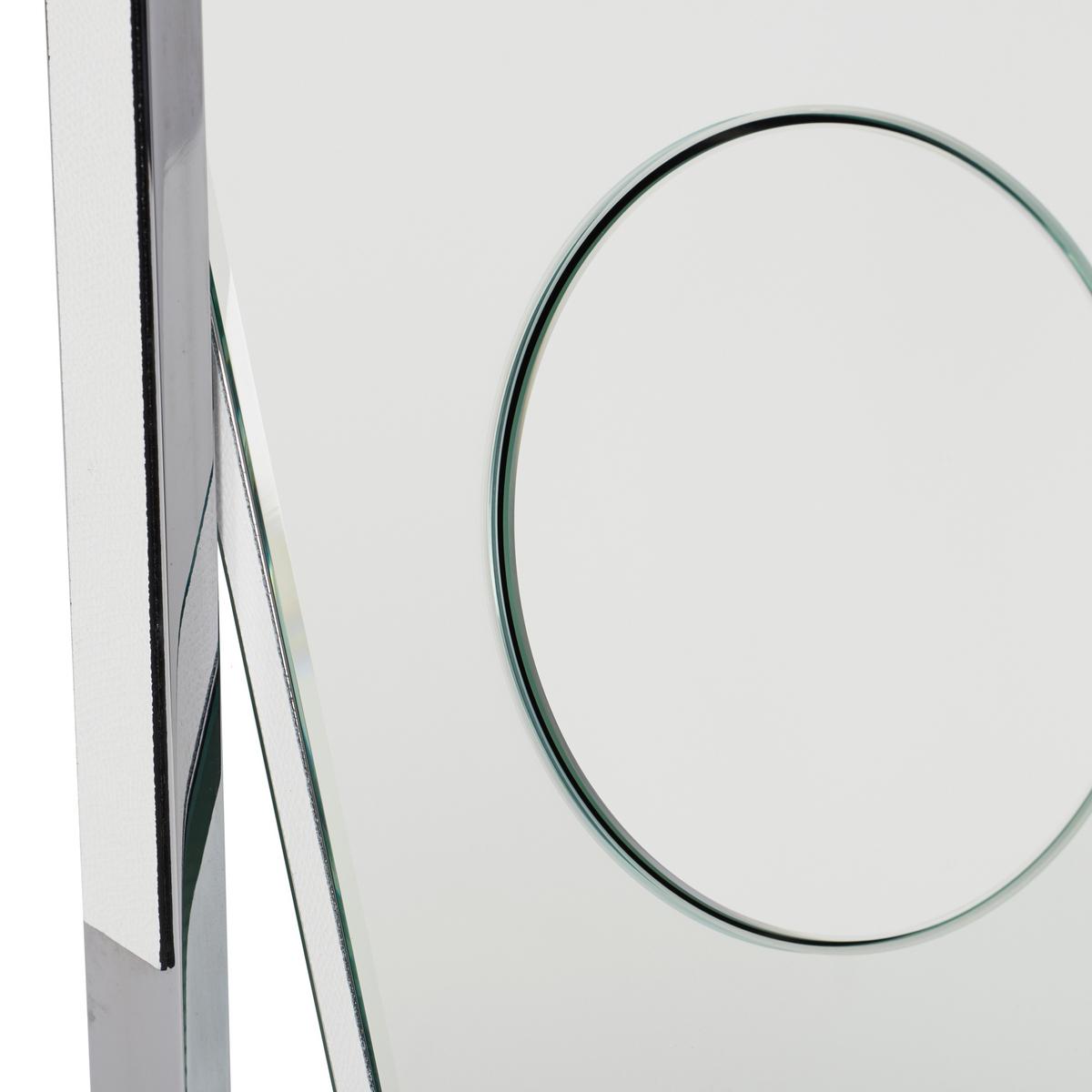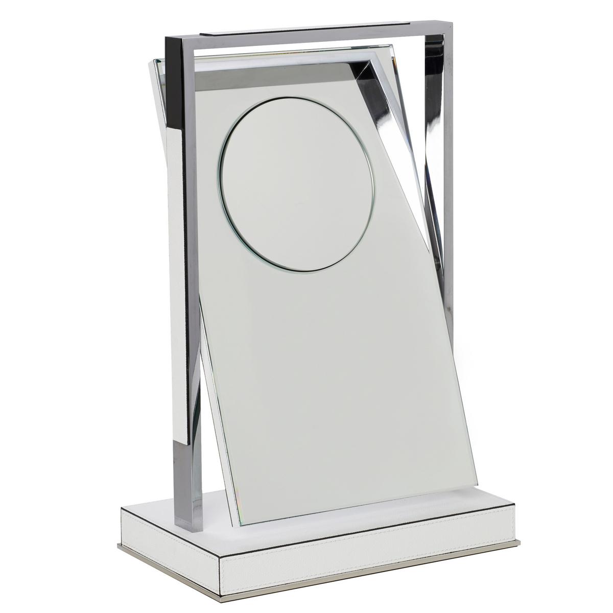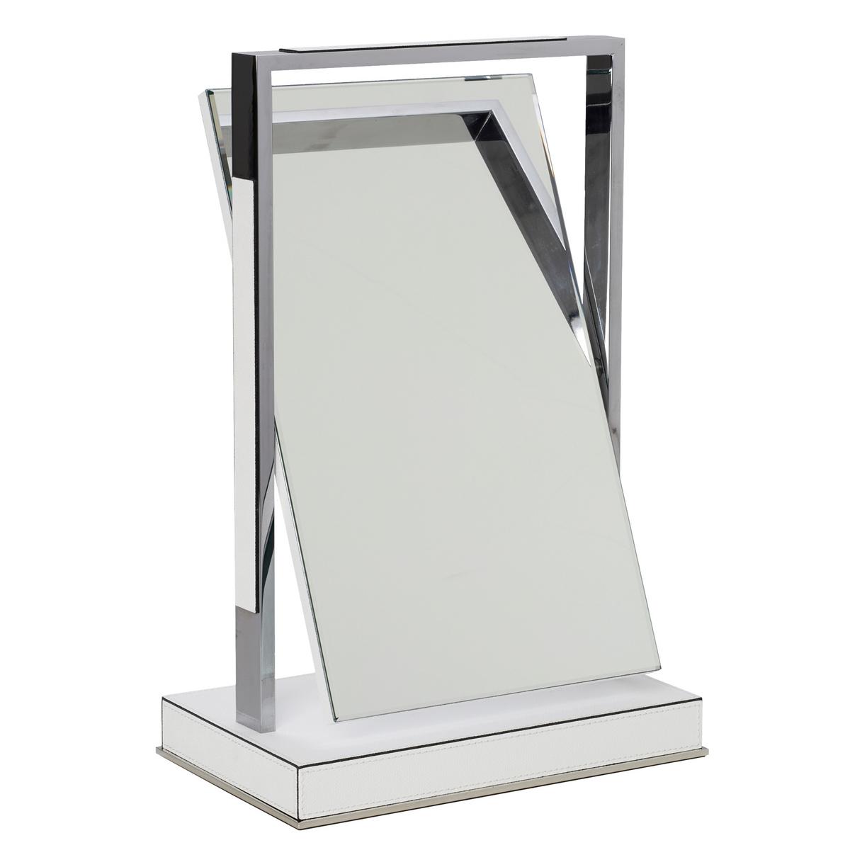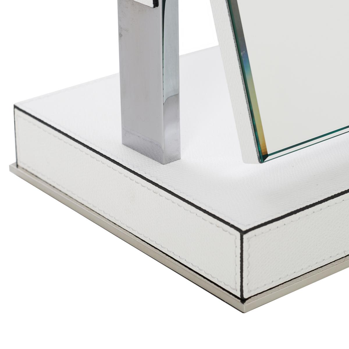 Handarbeit aus Italien, Rindsleder, kratz- und wasserfest, verchromtes Messing Spiegel rotiert um die eigene Achse. Eine Seite mit Vergrößerung, andere Seite ohne Vergrößerung.