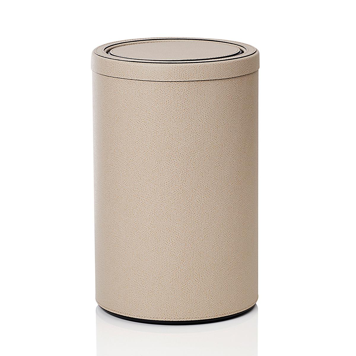 Das feine Lederoutfit macht die Leder-Papierkörbe "Swing" von GioBagnara zu einem eleganten Deko-Accessoire. Die Lederoberfläche ist wasserabweisend und lässt sich mit einem weichen Tuch und milder Seife leicht reinigen. Die Unterseite besteht aus einem rutschfesten, wasserdichten Gummiboden. Ein abnehmbarer Kippdeckel sorgt für eine einfache Reinigung. Der Kunststoffeinsatz ist nicht herausnehmbar.