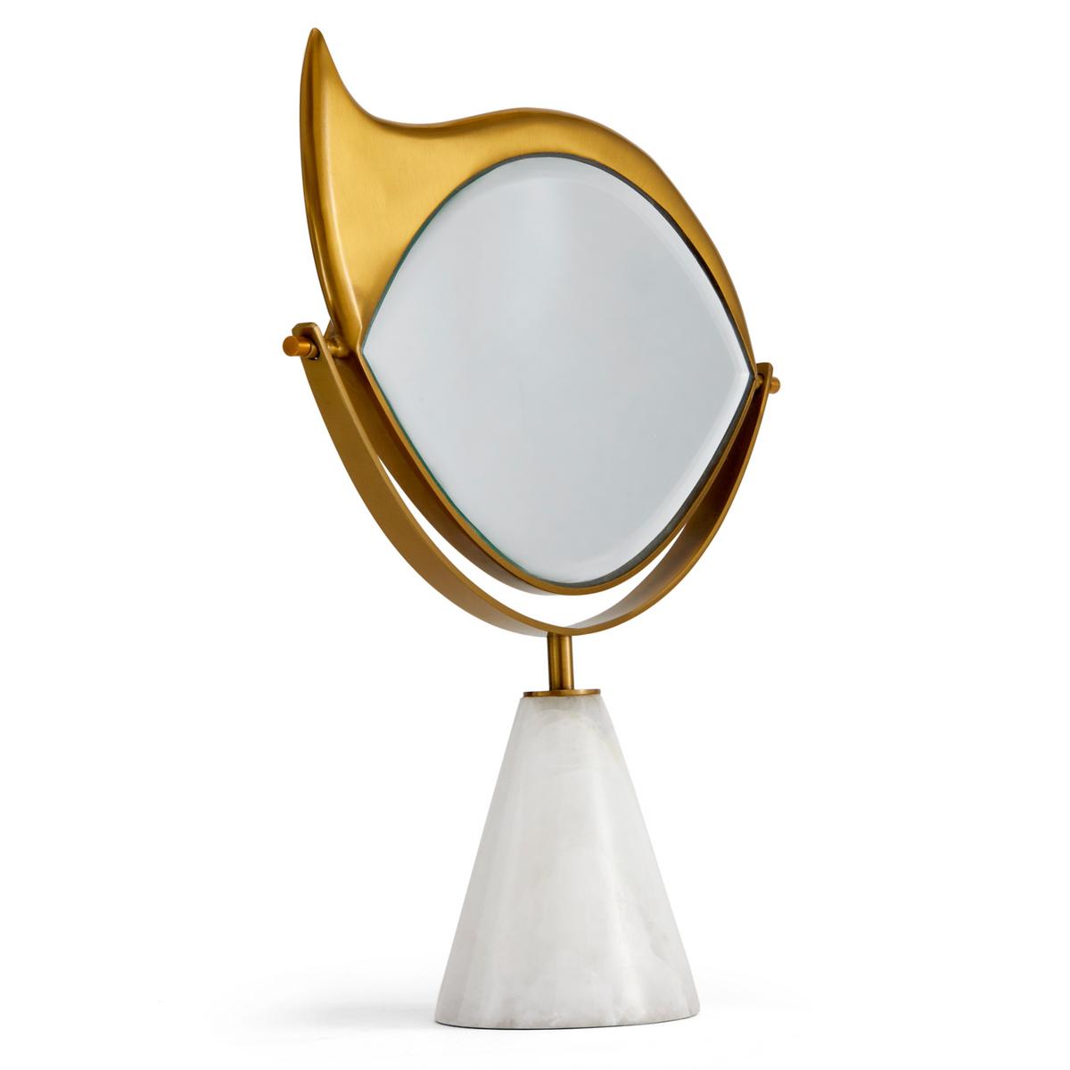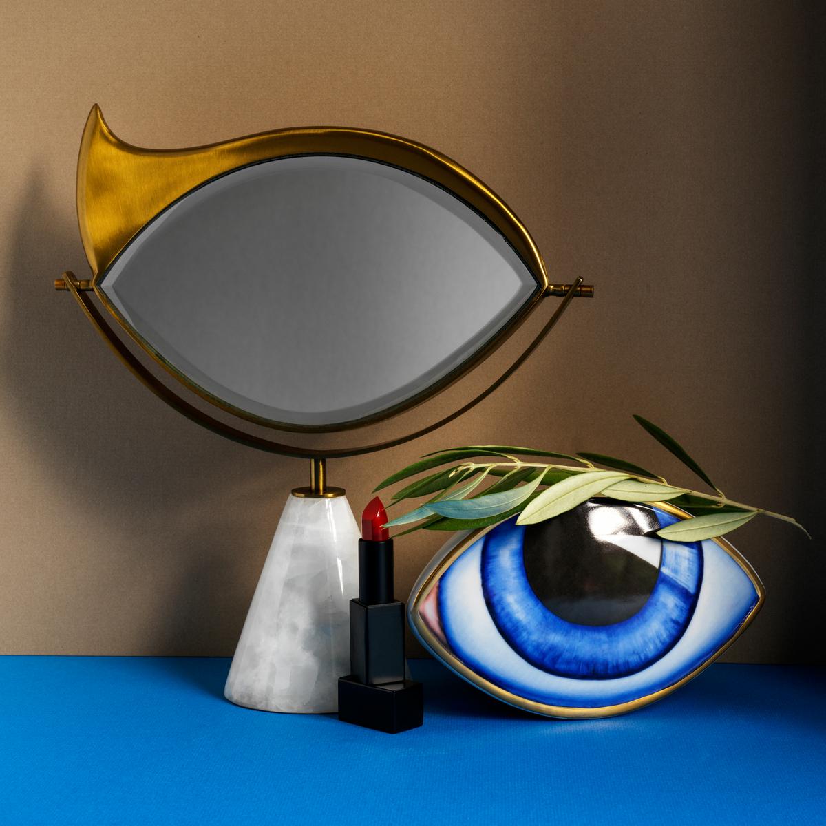 Das Auge ist ein uralter Talisman des Glücks und des Schutzes – und ein Bindeglied zwischen zwei schöpferischen Seelen. Dieses faszinierende Sinnesorgan steht im Mittelpunkt der Linie "Lito" von L'Objet. Das Auge ist beim Spiegel als Silhouette zu erkennen. Wunderschön thront ein goldenes Auge auf dem weißen Marmorfuß, so dass man den Blick kaum von dem einzigartigen Spiegel abwenden kann.