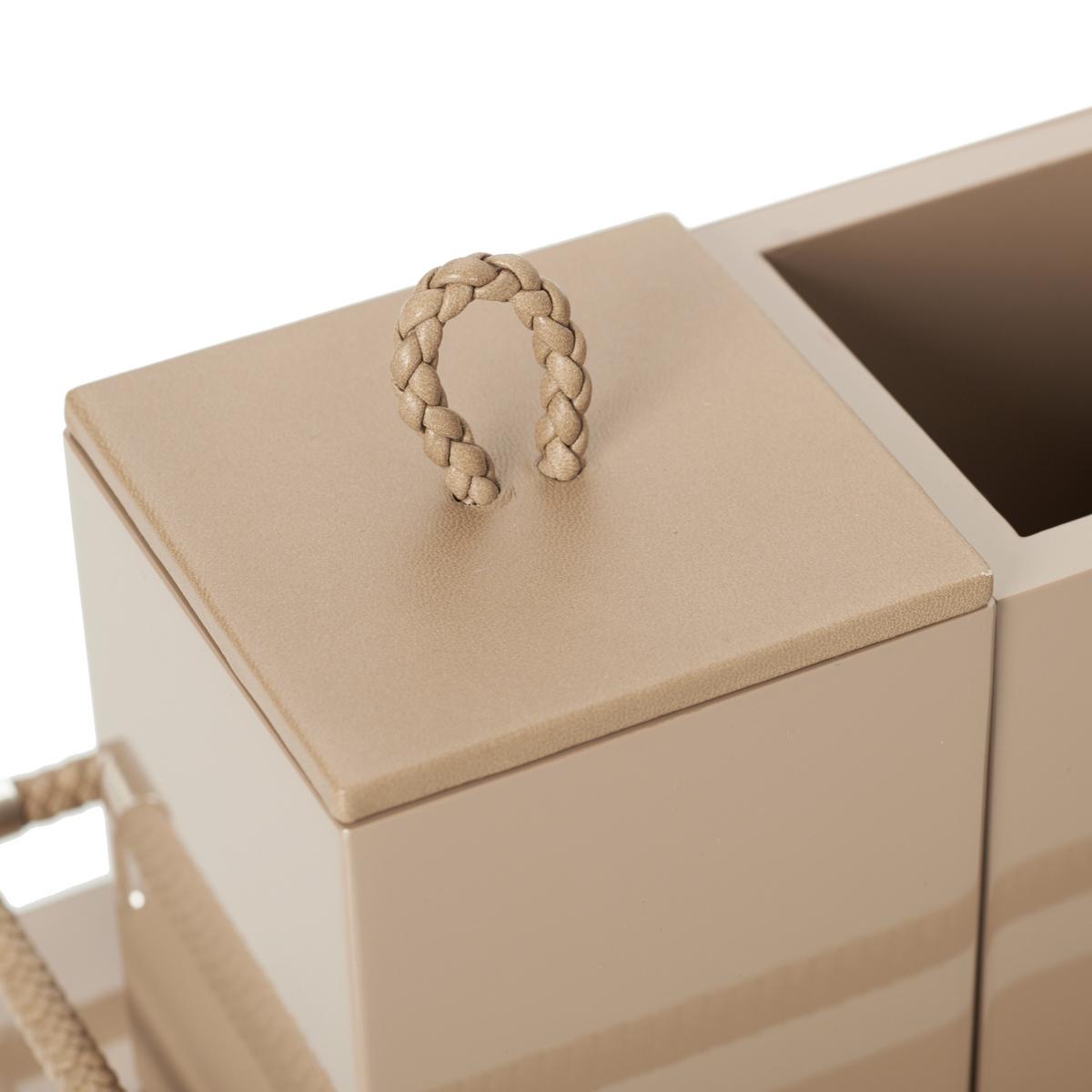 • Lederbox "Vanity": In der großen Lederbox können Sie besonders gut Badutensilien aufbewahren, die schnell griffbereit sein müssen. Die länglichen Außenseiten der Lederbox sind wattiert und gesteppt.