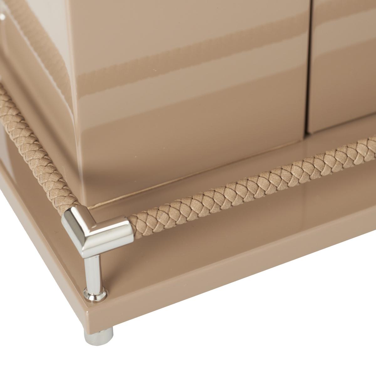 • Deko-Tablett "Vanity" mit Ledergriffen: Von Hand aufgetragene Lackschichten veredeln das elegante Tablett. Die Reling besteht aus feinstem, geflochtenem Rindsleder. Kleine Füßchen aus Chrom sorgen für einen leicht erhöhten Stand.