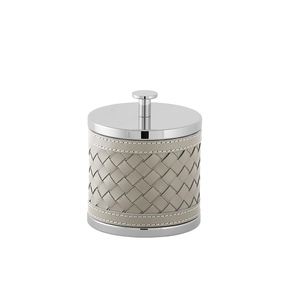 Reine Handarbeit: Die wunderschönen Badaccessoires "Milano" von Riviere werden in Italien mit großer Kunstfertigkeit hergestellt. Das einzigartige Können der Kunsthandwerker zeigt sich besonders in dem handgeflochtenen Rindsleder, das die Seifenspender und Dosen aus verchromtem Messing ummantelt.