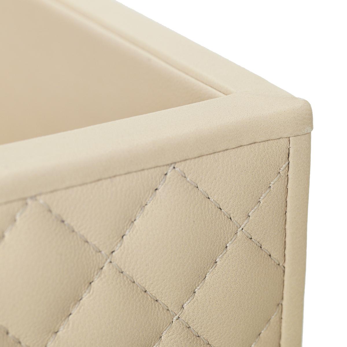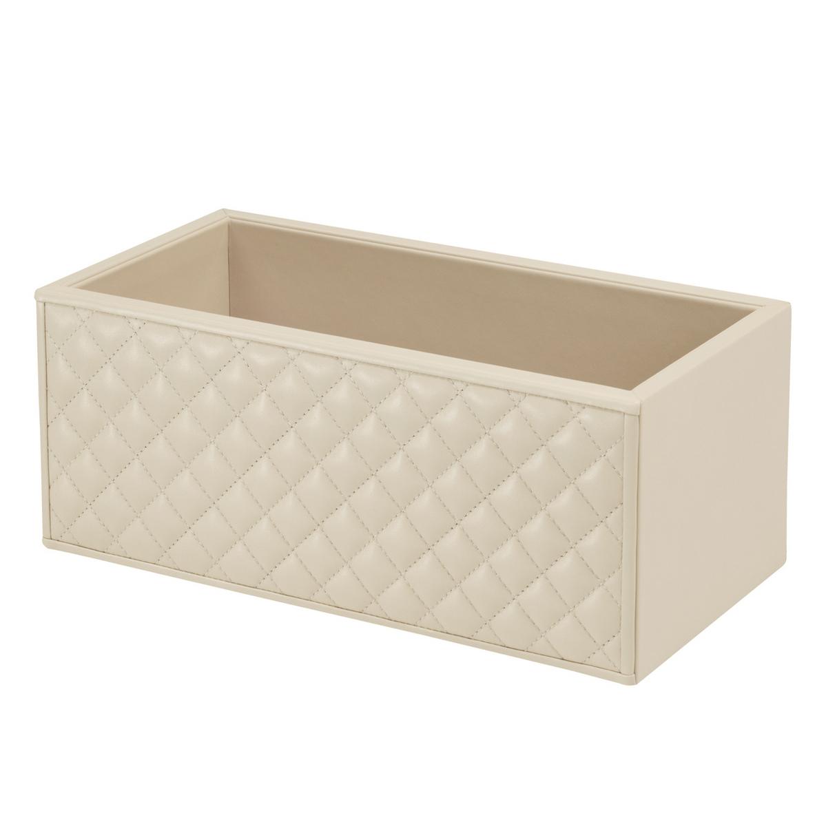• Lederbox "Vanity": In der großen Lederbox können Sie besonders gut Badutensilien aufbewahren, die schnell griffbereit sein müssen. Die länglichen Außenseiten der Lederbox sind wattiert und gesteppt.