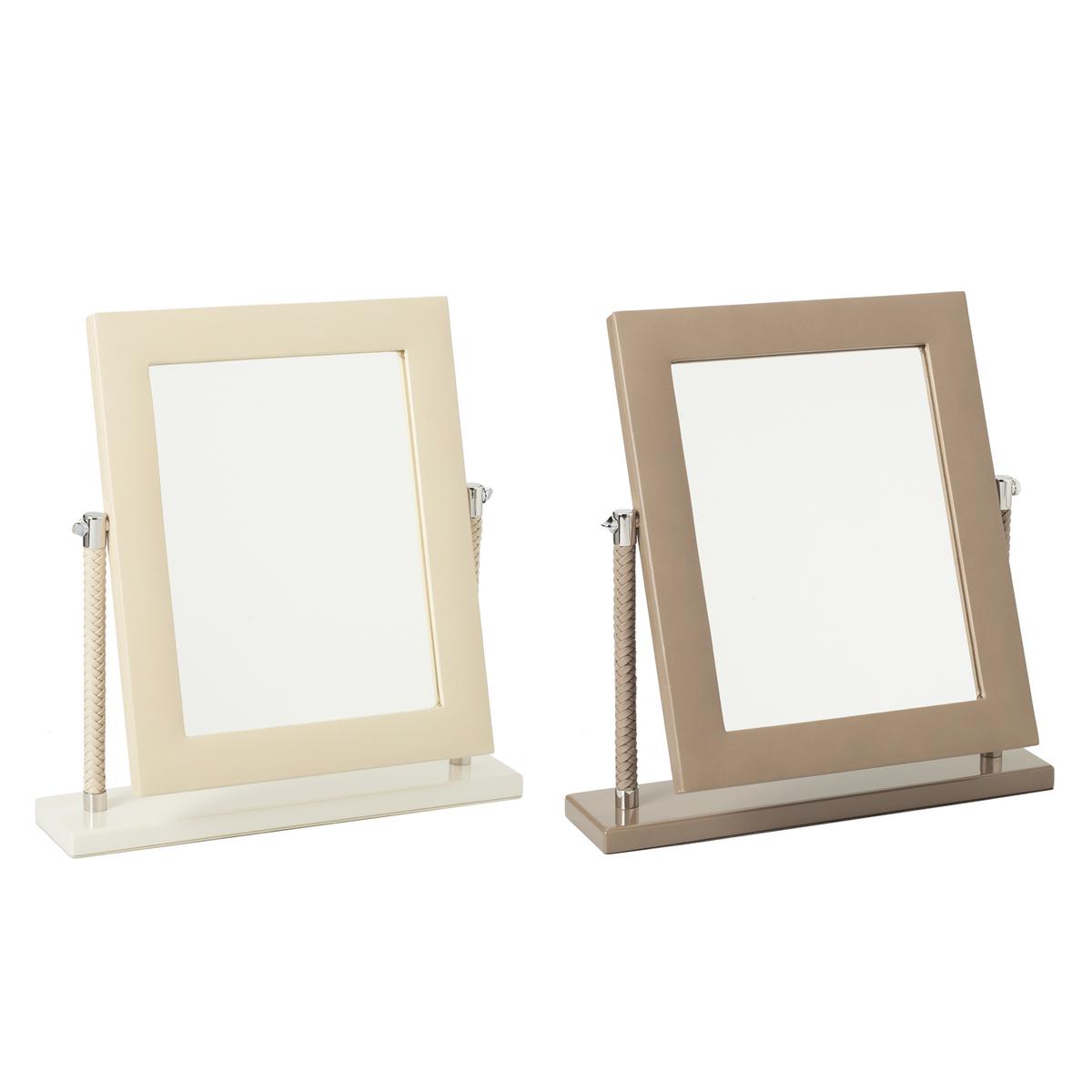 Die wunderschönen Lederspiegel "Vanity" von Riviere werden mit viel Liebe zum Detail in reiner Handarbeit hergestellt. Der Standfuß der Spiegel ist lackiert, während der Rahmen und die Rückseite des Rahmens aus Leder sind. An den seitlichen verchromten Ösen kann die genaue Position der Lederspiegel eingestellt werden. Ein absoluter Hingucker und schönes Deko-Element ist das von Hand geflochtene Rindsleder. Der Lederspiegel ist kein Vergrößerungsspiegel.