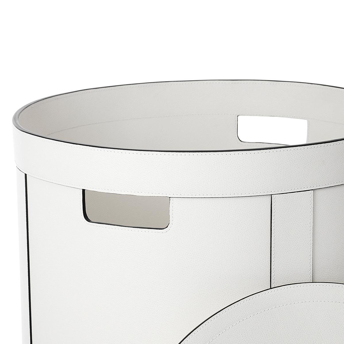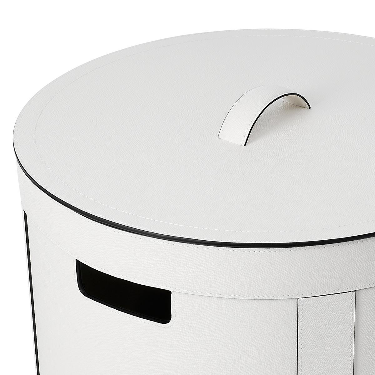 Im Badezimmer oder Schlafzimmer setzen die Wäschekörbe "Brus" von GioBagnara ein dekoratives Highlight. Jeder Wäschekorb entsteht in reiner Handarbeit in Italien. Die Lederoberfläche ist wasserabweisend und lässt sich mit einem weichen Tuch und milder Seife leicht reinigen. Vor ständiger Feuchtigkeit sollte der Wäschekorb allerdings geschützt werden.