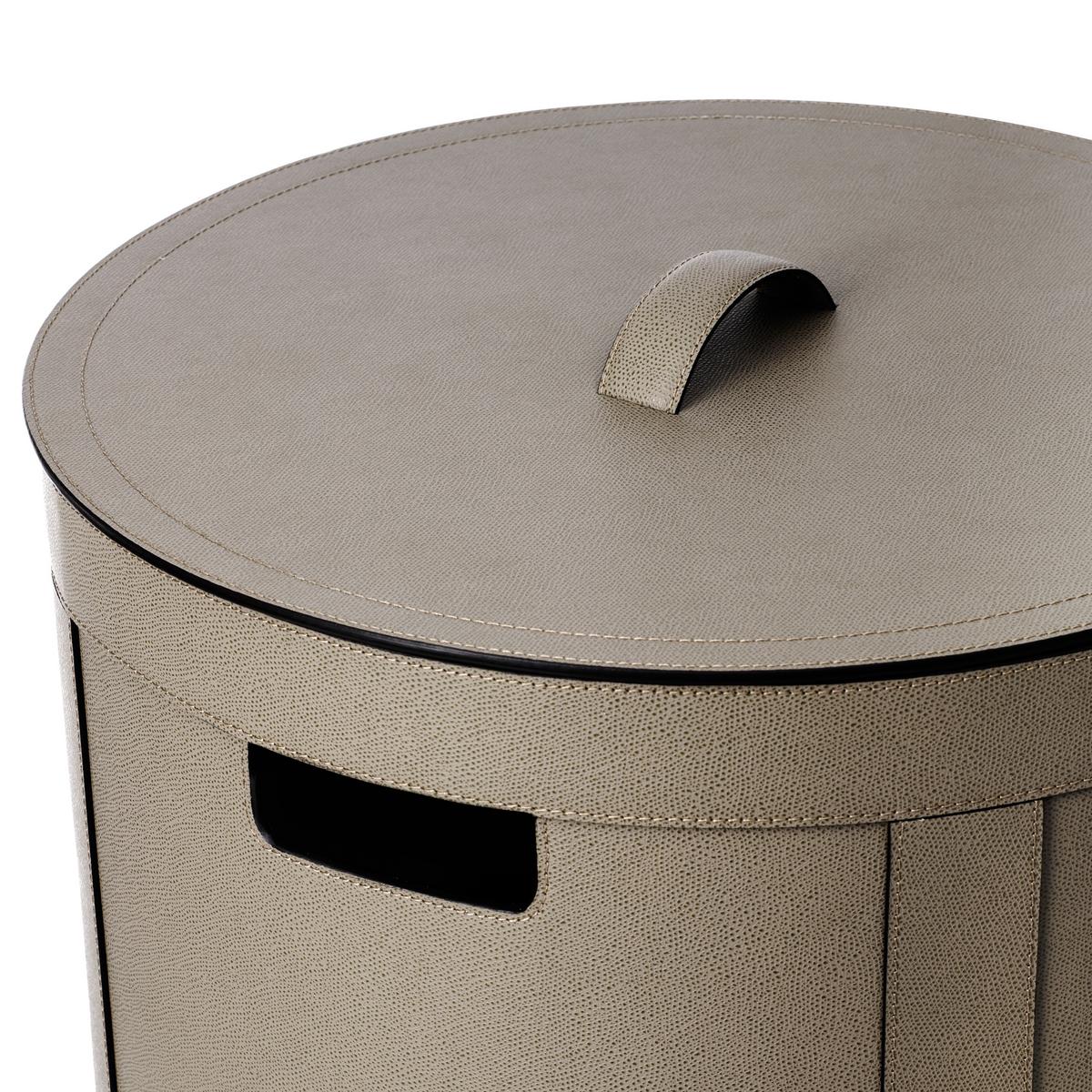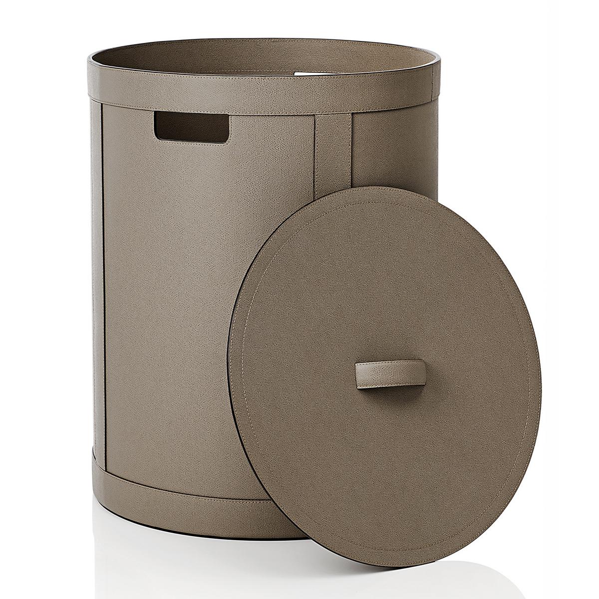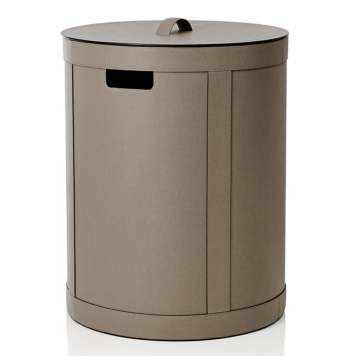 Im Badezimmer oder Schlafzimmer setzen die Wäschekörbe "Brus" von GioBagnara ein dekoratives Highlight. Jeder Wäschekorb entsteht in reiner Handarbeit in Italien. Die Lederoberfläche ist wasserabweisend und lässt sich mit einem weichen Tuch und milder Seife leicht reinigen. Vor ständiger Feuchtigkeit sollte der Wäschekorb allerdings geschützt werden.