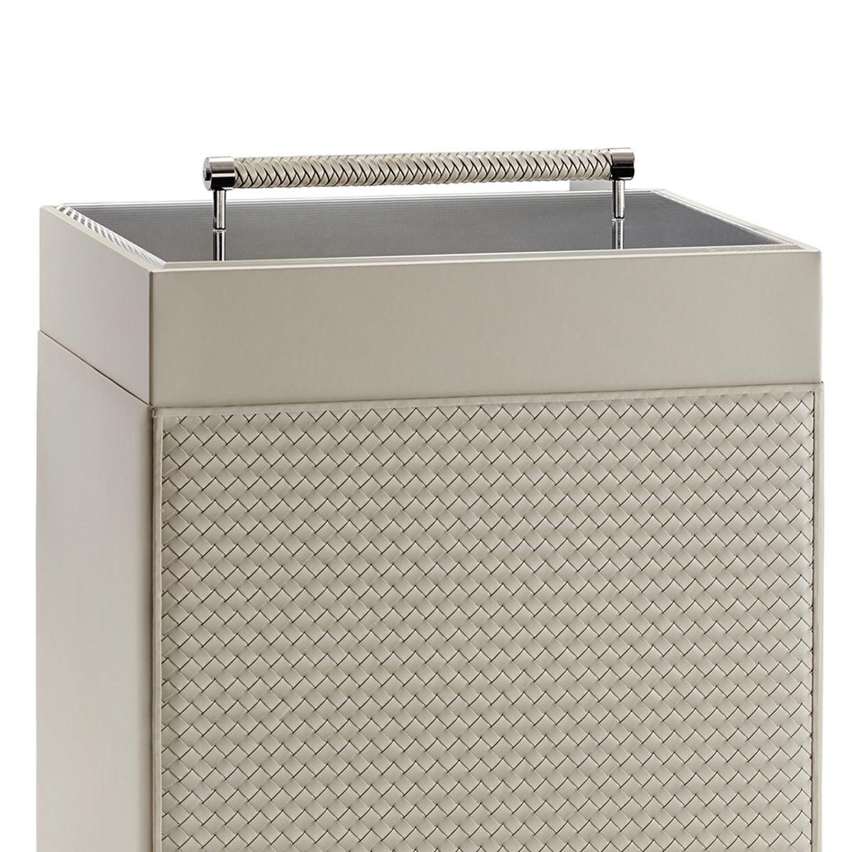 Die Wäschekörbe "Milano" von Riviere bringen ein Hauch von Eleganz, Luxus und Stil in Ihr Bad. Sie bestechen durch eine makellose Verarbeitung und die raffinierte Kombination hochwertiger Materialien. Das butterweiche Rindsleder ist an drei Seiten glatt, und an einer Seite von Hand geflochten. Das Innere der Wäschekörbe ist aus dunkel lackiertem Holz. Nicht nur praktisch, sondern auch besonders dekorativ ist der Deckel aus Acrylglas. Der verchromte Griff ist mit handgeflochtenem Rindsleder ummantelt.