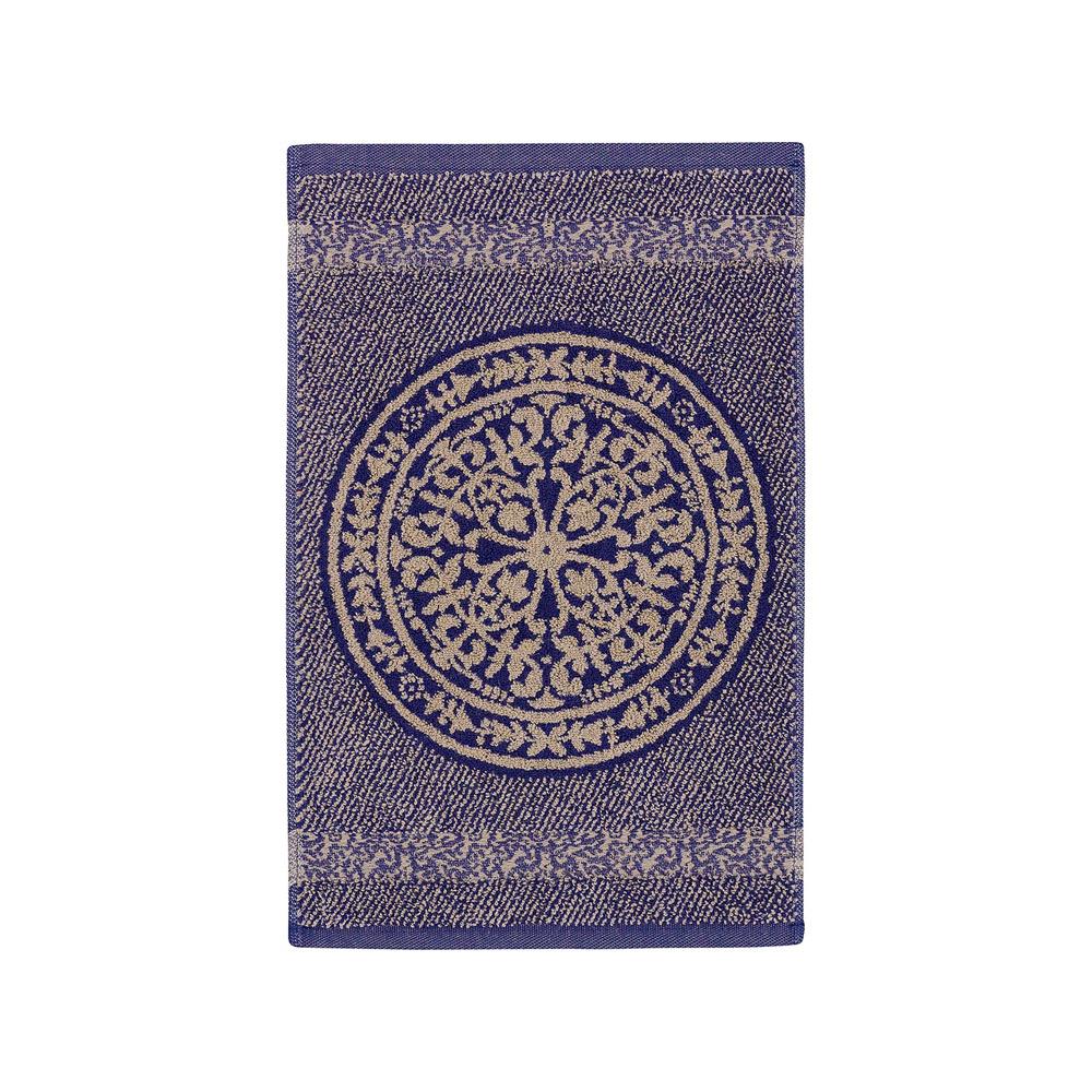 Bei der Frottierwäsche "Rosetta" ziert eine kunstvolle runde Ornamentik jedes Handtuch in der Mitte. Eine Rosette mit eingewebten hellen Ornamenten hebt sich von einem farbigen Fond mit Schräglinien ab. "Rosetta" von Leitner Leinen zaubert eine romantische Verspieltheit in jedes Badezimmer.