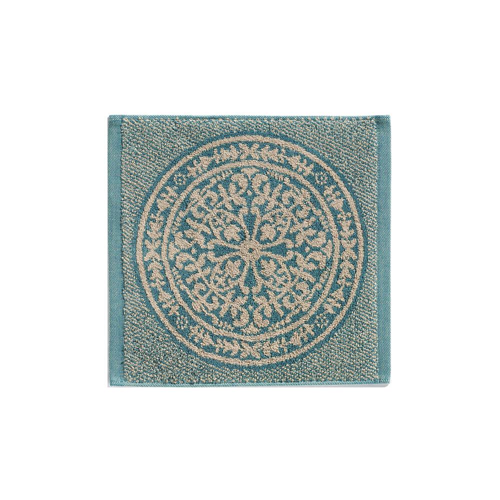 Bei der Frottierwäsche "Rosetta" ziert eine kunstvolle runde Ornamentik jedes Handtuch in der Mitte. Eine Rosette mit eingewebten hellen Ornamenten hebt sich von einem farbigen Fond mit Schräglinien ab. "Rosetta" von Leitner Leinen zaubert eine romantische Verspieltheit in jedes Badezimmer.