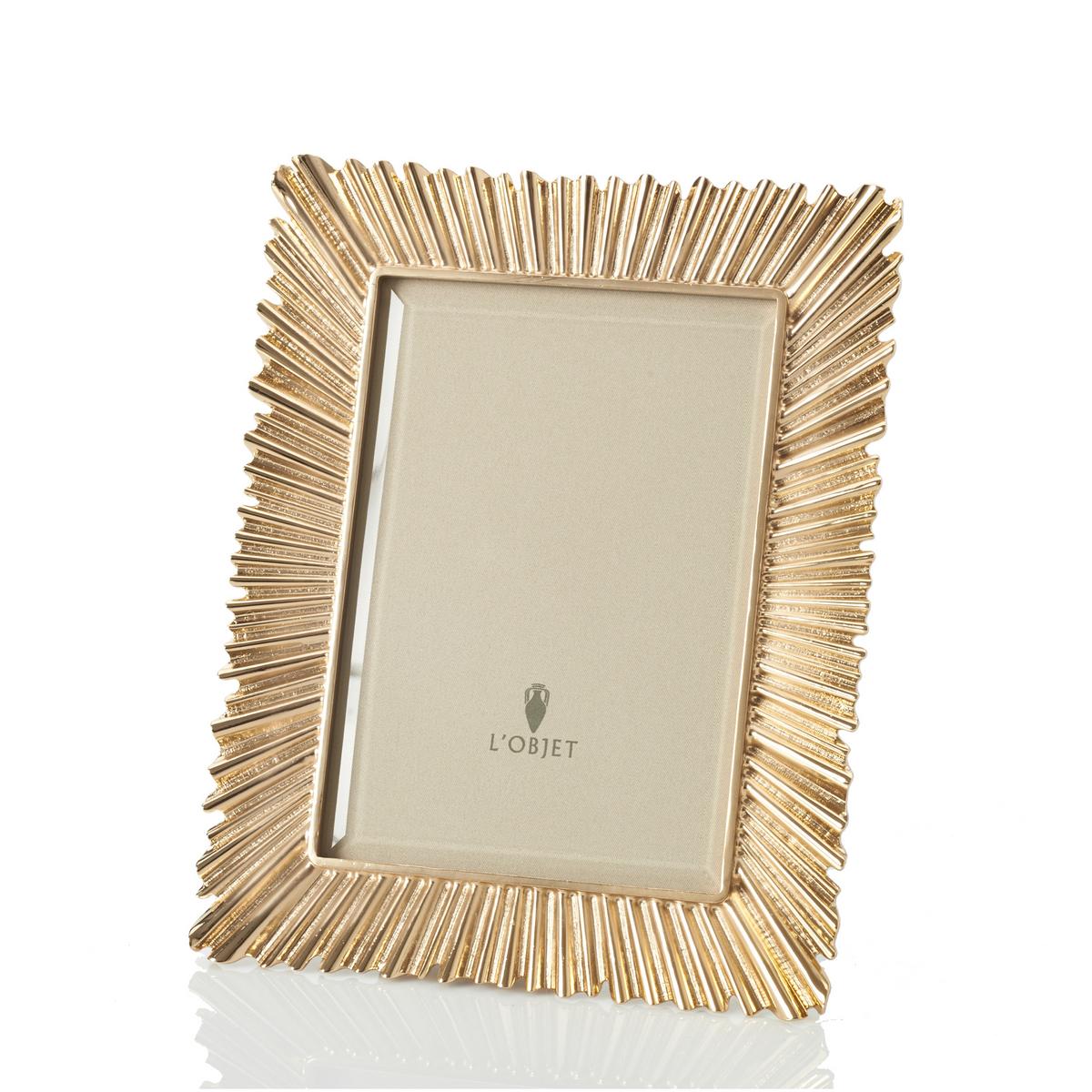 "Ray" bedeutet aus dem Englischen übersetzt Strahl. Treffender hätte man den Namen für diesen Bilderrahmen von L'Objet nicht wählen können, denn der strahlenförmige goldene Rand des Bilderrahmes "Ray" leuchtet seinen Betrachter sprichwörtlich an. Die Rückseite des Bilderrahmens "Ray" von L'Objet besteht aus hochwertigem Leder.