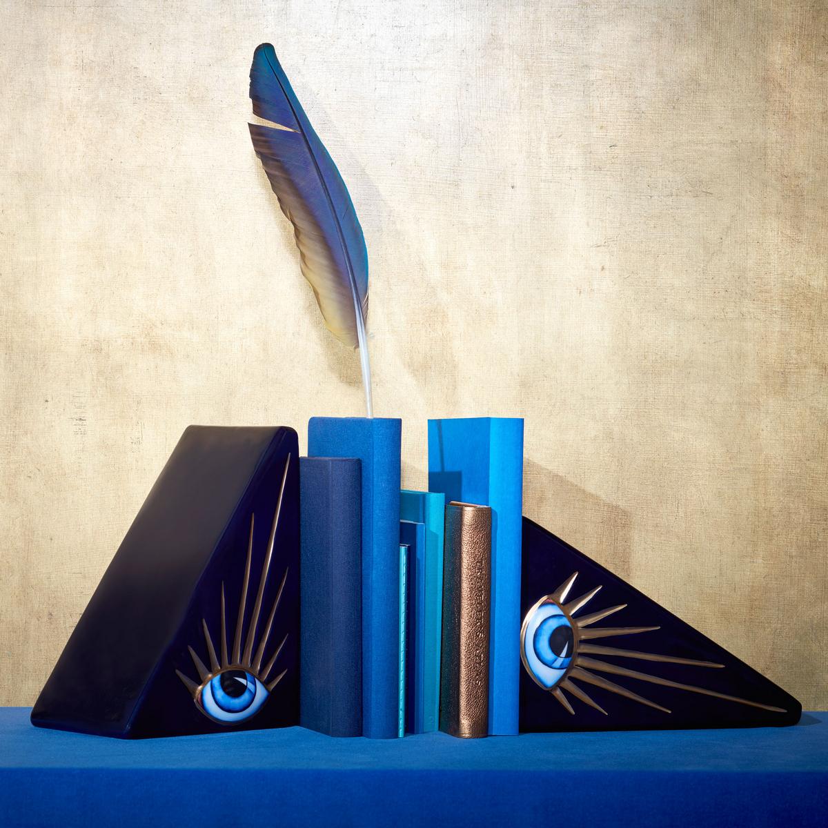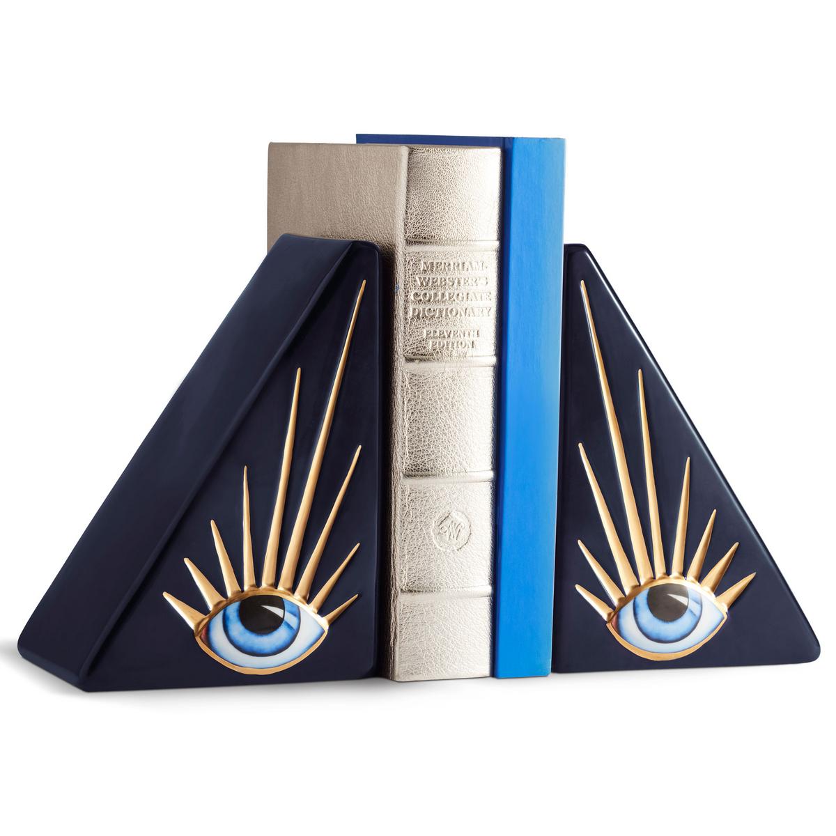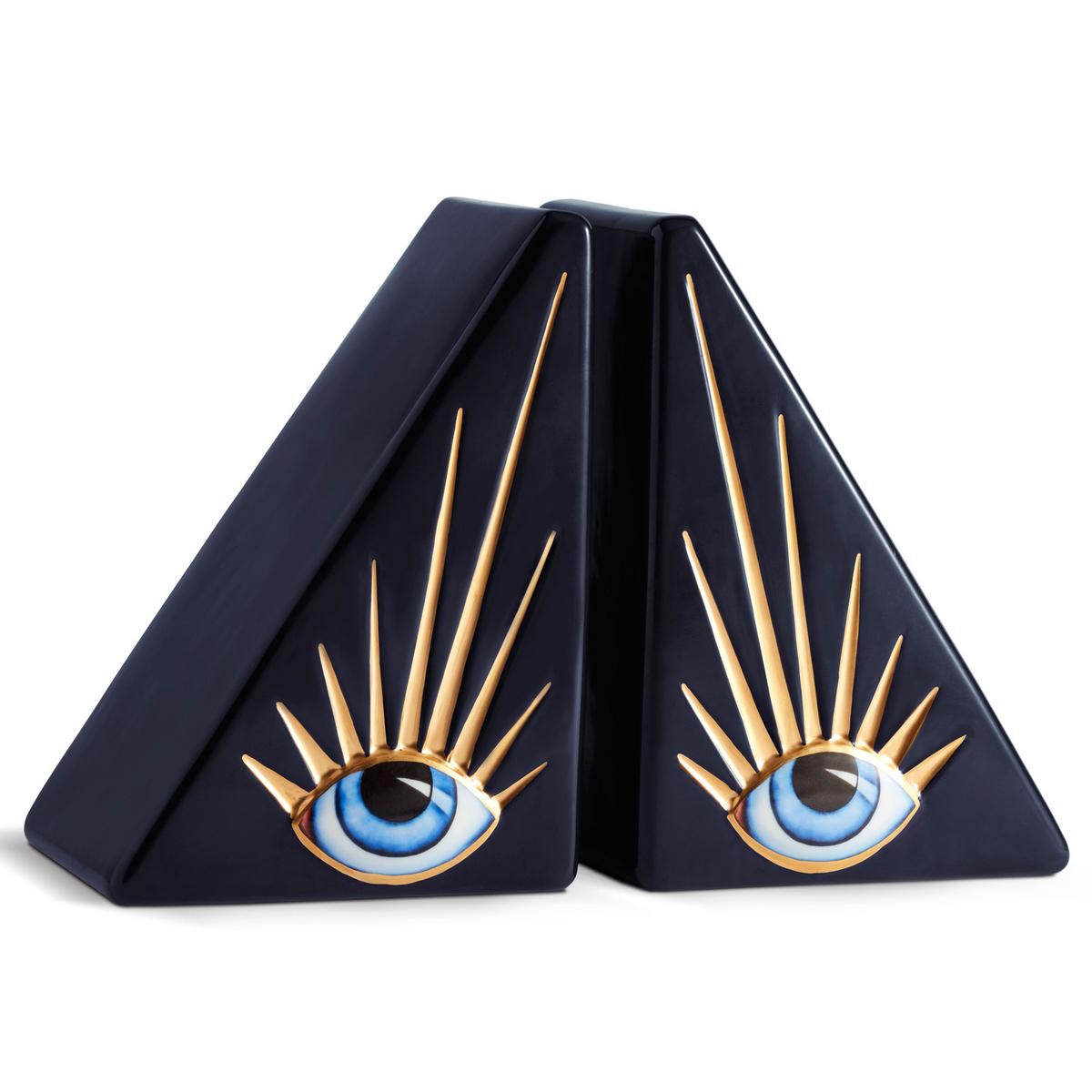 Die Buchstützen "Lito" von L'Objet zeichnen sich durch ein besonders elegantes Augen-Design in kräftigen Farben aus. Neben der Funktionsweise für Ordnung bei der Büchersammlung sind die dreieckigen Buchstützen außerdem auffällige Dekostücke für das Regal. Die Buchstützen "Lito" von L'Objet sind aus feinem Porzellan gefertigt.