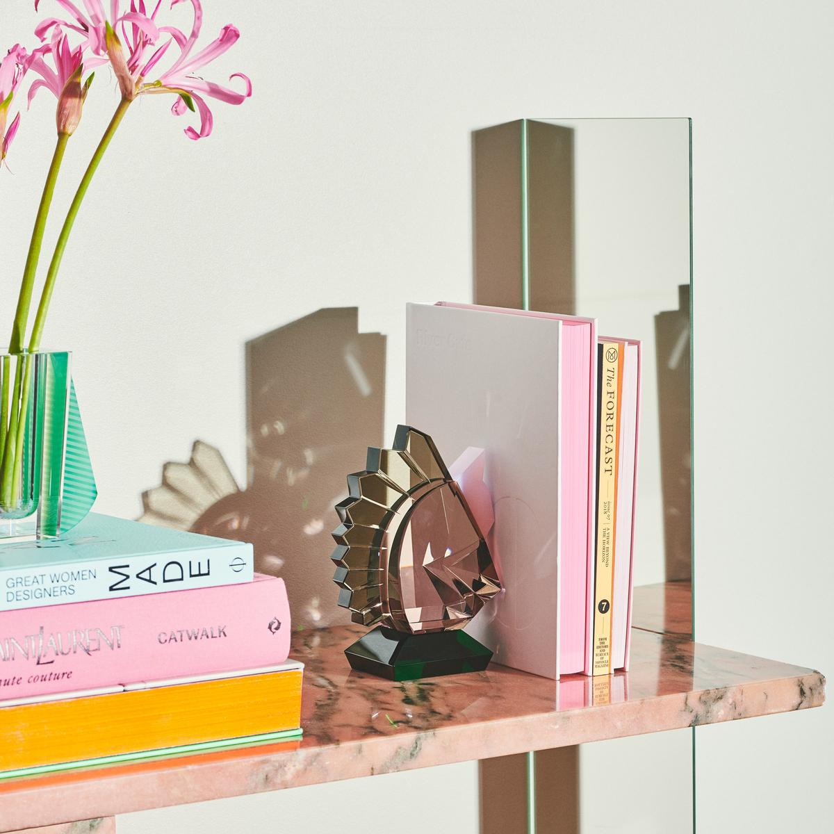 Die Buchstütze "Horse" von Reflections Copenhagen ist ein schönes Wohnaccessoire für Pferdeliebhaber. Aber auch Designfans werden sich an dem modern interpretierten Pferdekopf in schönen Glasfarben erfreuen. Die 18 cm hohe Buchstütze besteht aus handgeschliffenem Kristallglas. Das massive Glas macht die Buchstütze schwer und standfest.