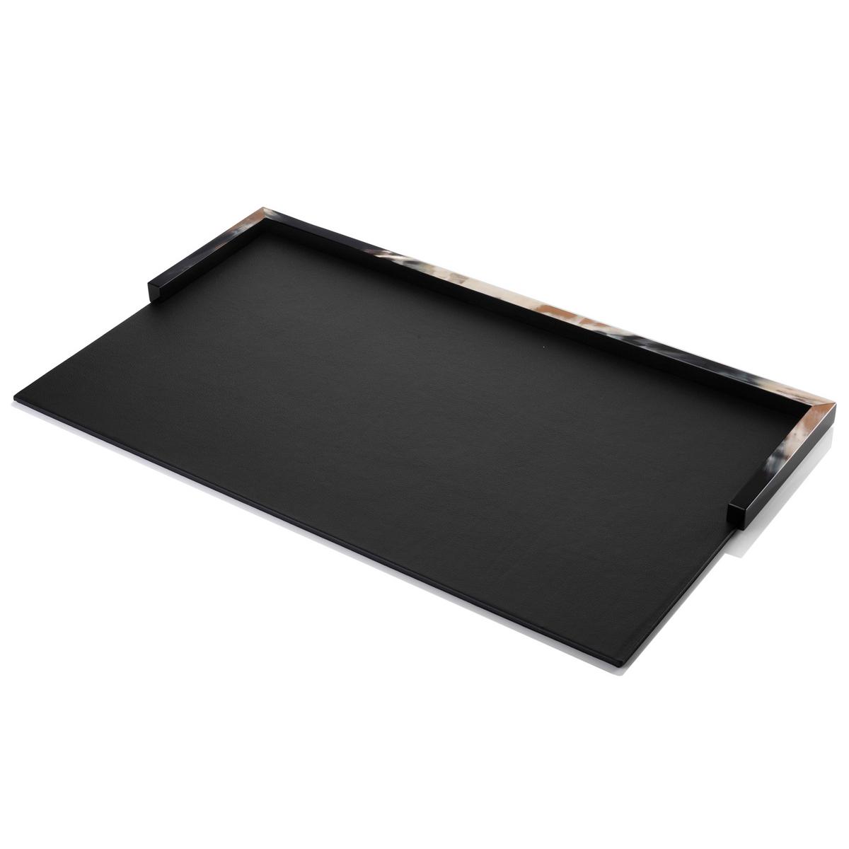 • Dunkles Büffelhorn, schwarzes Leder, schwarzer Lack, Handarbeit aus Italien