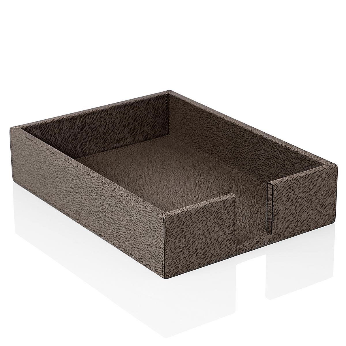Die Ablagekästen "Leo" aus feinstem, italienischem Kalbsleder sorgen für aufgeräumte Stimmung im Büro. DIN A4 Blätter finden so ein sehr edles passendes Zuhause, denn die Ablagekästen "Leo" entstehen in reiner Handarbeit in der Manufaktur von GioBagnara in Italien. Das Leder wird mit einer weißen Ziernaht abgesteppt. Die Rückseite der Ordnungskästen besteht aus dunkelbraunem, rutschfestem Wildleder. Die Farben sind passgenau abgestimmt auf die Büroaccessoires-Serie "Phil" von GioBagnara.