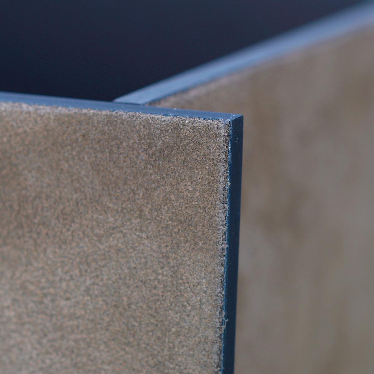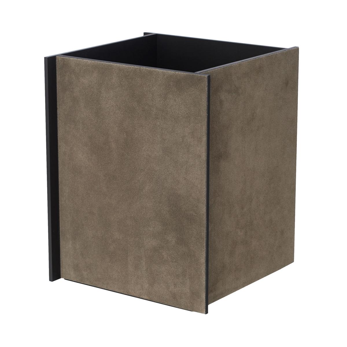 Die Linie "Malaparte" von GioBagnara kombiniert patiniertes Metall und Wildleder. Sie spielt mit den Kontrasten der Materialien, Texturen und Farbtöne. Die streng strukturierte Geometrie erinnert an einen modernistischen Geist von Rietvelds Möbeln und die Geradlinigkeit der japanischen Ästhetik. Hier bieten wir die Büro-Accessoires in Farbe Schlamm an. Sie sind ebenso in Farbe Elfenbein erhältlich.