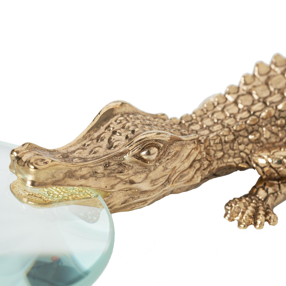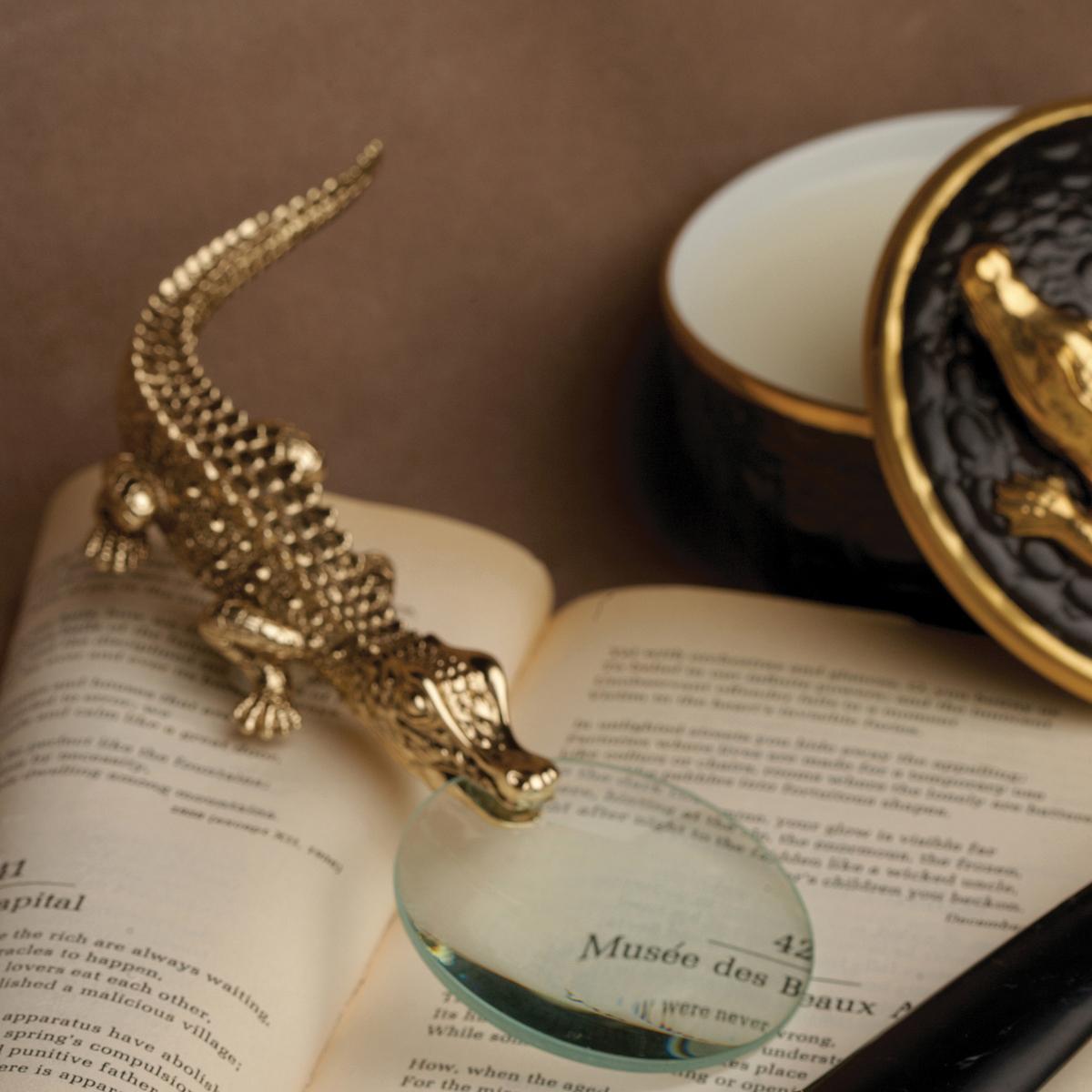 Die Lupe "Crocodile Gold" von L'Objet besteht aus einem vollständig vergoldeten Krokodil, das als Griff für die Lupe dient. Fast wirkt es so als schnappe das Krokodil nach dem Vergrößerungsglas, so lebensecht wirkt die Lupe "Crocodile Gold" von L’Objet.