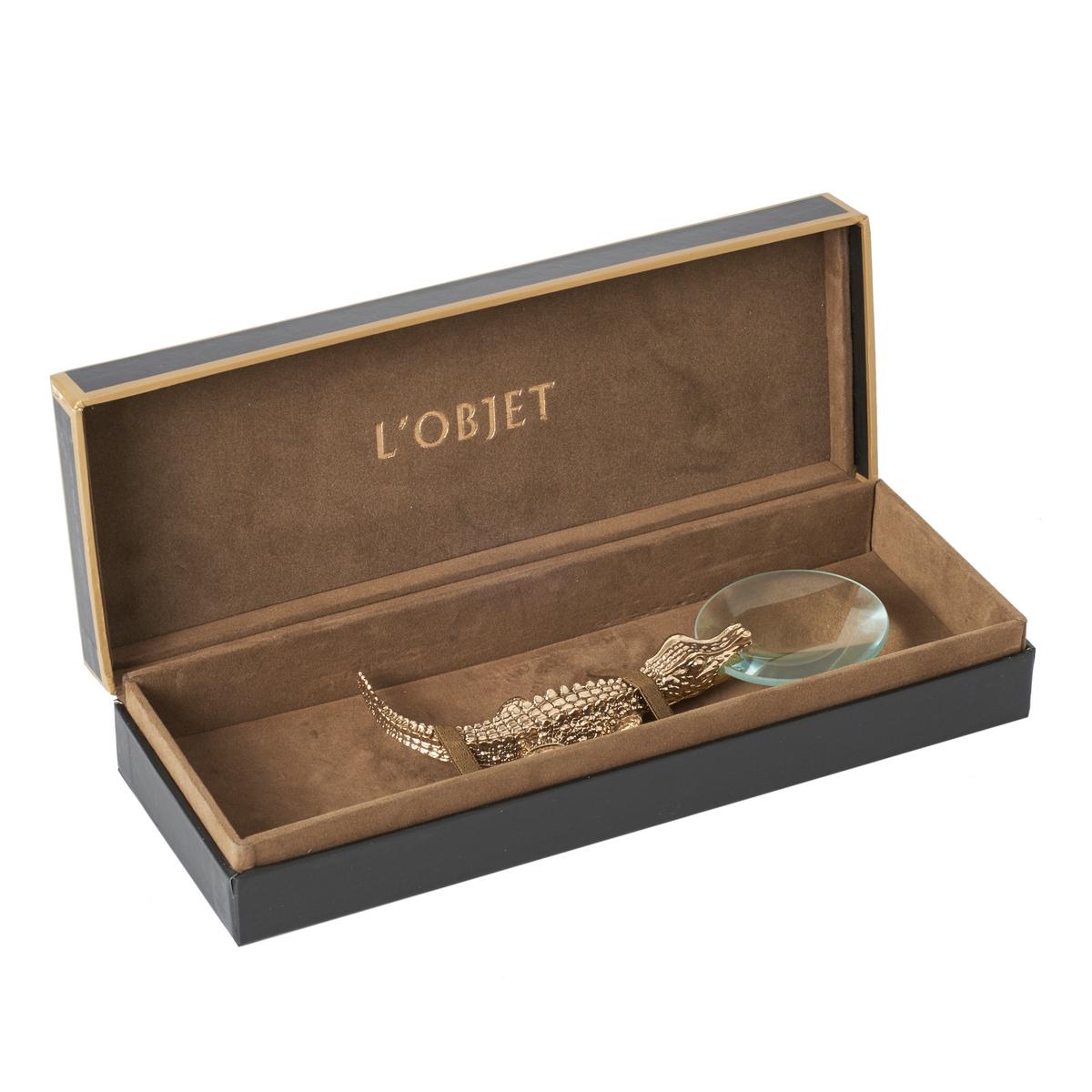Mit größter Sorgfalt und dank höchster Handwerkskunst wird die Lupe "Crocodile Gold" hergestellt. Verpackt ist die die Lupe in einer schönen L’Objet Geschenkbox.
