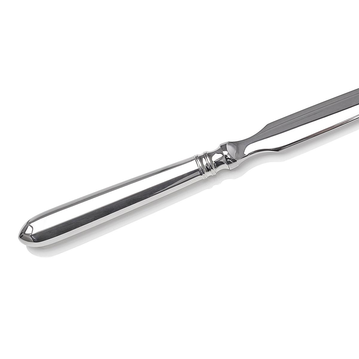 Der versilberte Brieföffner "Navette" von Robbe & Berking überzeugt nicht nur durch seine schlichte Eleganz und zeitlose Schönheit, er ist zudem auch ein sehr praktisches Utensil für den Schreibtisch. "Navette" bezeichnet einen spitzovalen Schliff bei Edelsteinen. Der versilberte Brieföffner von Robbe & Berking macht diesem Namen alle Ehre, denn er besitzt einen sanft geschwungenen spitz zulaufenden Stiel mit einem plastischen Überwurf am Ende.
