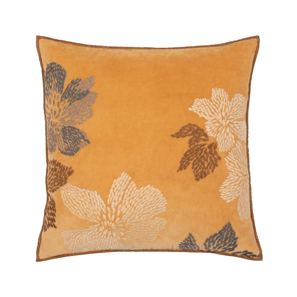Gestickte Blätter und Blumen treten auf dem feinen Baumwollsamt fast dreidimensional hervor. Das stilisierte Design der Kissen "Merida" von Iosis ist reich an feinen Stickereien und Fadenschattierungen. Eine farblich kontrastreiche Samtpaspelierung vollendet den geschmackvollen Look der Kissen "Merida". Die Rückseite der Bezüge ist unifarben.