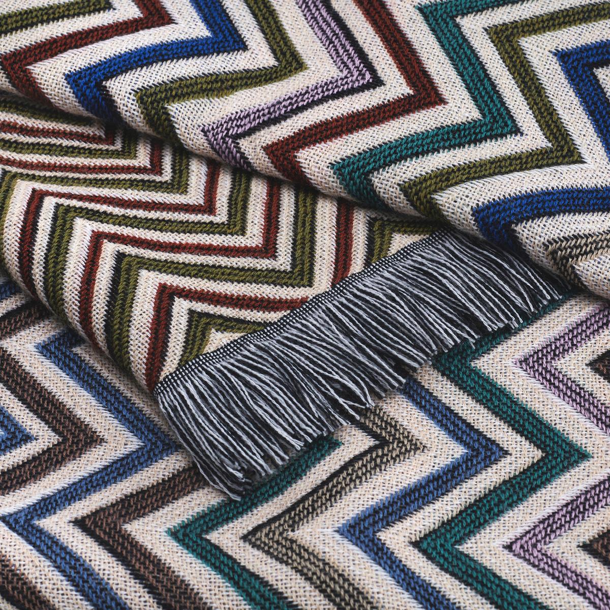 Das leichte Strickplaid "Antwan" von Missoni Home besitzt eine feinstrukturierte Oberfläche im typischen Missoni Zickzack Look. Das Zickzack Muster überzeugt diesmal mit erdigen Farbtönen in creme, rostrot und Kaki grün. Das luftige Plaid ist nicht nur dekorativ, sondern auch perfekt als sommerlicher Überwurf zu verwenden.