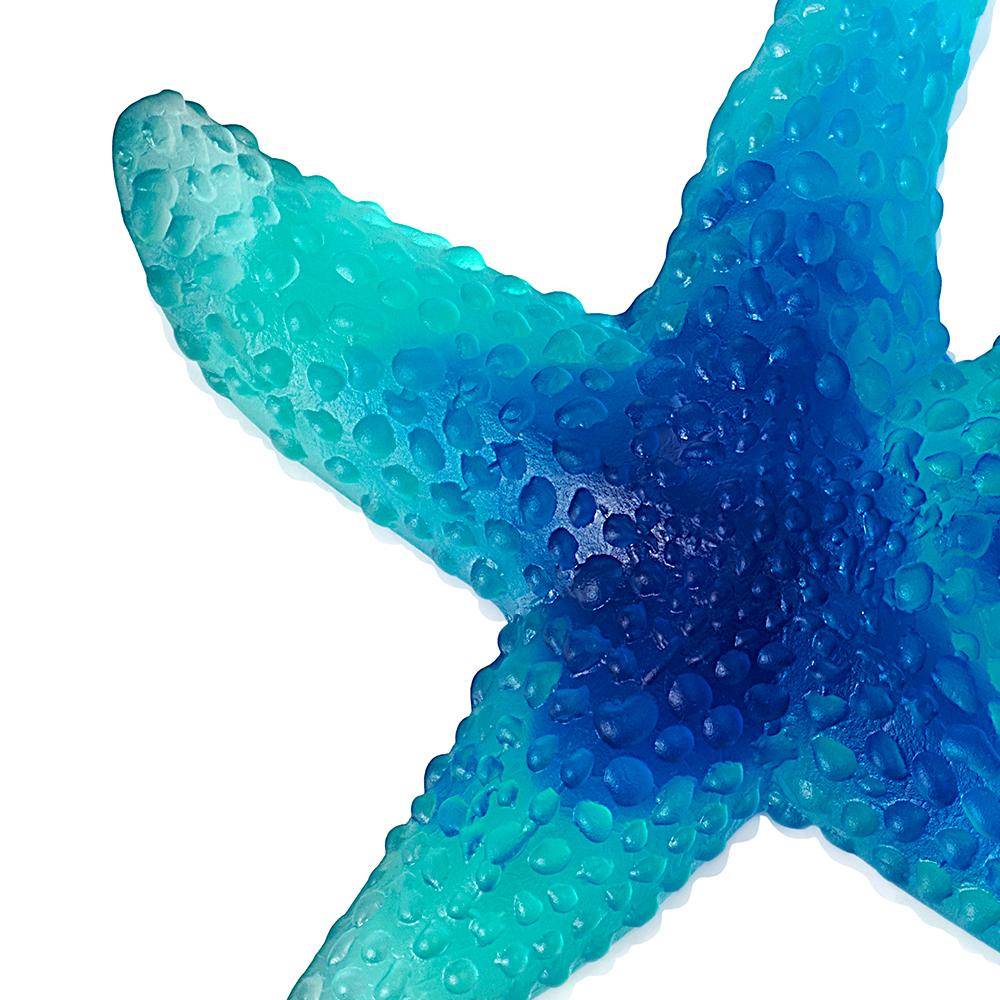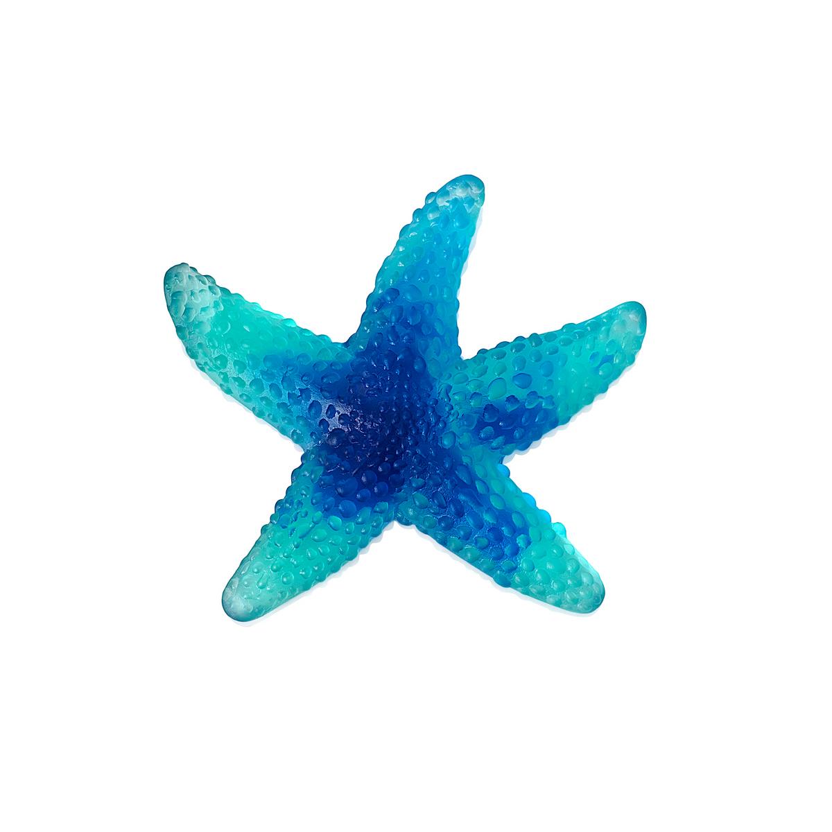 Jeder Seestern wird in der Manufaktur von Daum in Frankreich aus einem einzigartigen Kristallglasteig per Hand hergestellt und ist somit ein Unikat. Kristallglasteig besteht aus einer diffizilen Mischung von Kristall- und Blei-Granulat. Die Masse schmilzt unter den Händen der Glaskunstmeister wie Wachs. So entstehen außergewöhnliche Formen, ein wunderbares Farbenspiel und Konturen, die ineinander fließen. Eingeschlossene kleine Luftbläschen sind eben Zeichen dieses besonderen Herstellungsprozesses.