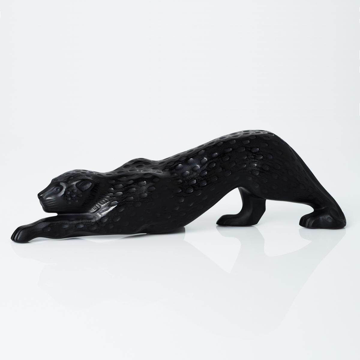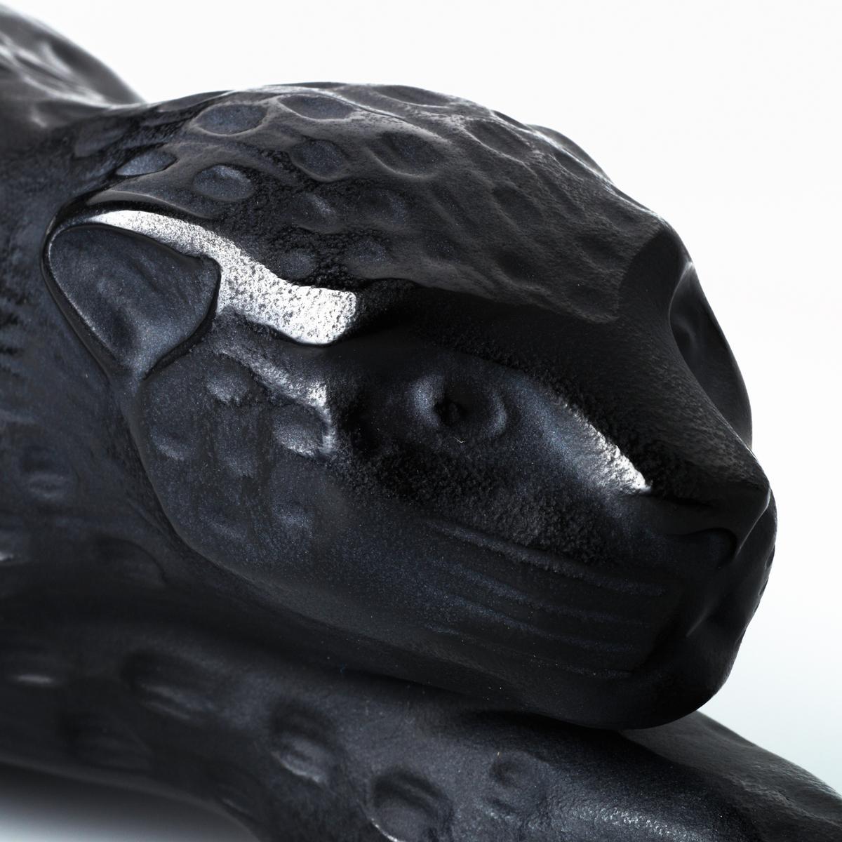 Der Panther ist ein kraftvolles und wunderschönes Tier mit einer sehr charismatischen Ausstrahlung. Er bewegt sich mit seinem schlanken Körperbau auf äußerst grazile Art und Weise, gerade wenn er sich an seine Beute anschleicht. Lalique ist es gelungen diesen Moment des vorsichtigen Anschleichens in einer imposanten Kristallglasskulptur festzuhalten. Der detailgetreu abgebildete Panther "Zeila" strahlt absolute Harmonie, kraftvolle Eleganz und Entschlossenheit aus. Wunderschön ist das Spiel aus glänzendem und satiniertem Kristallglas.