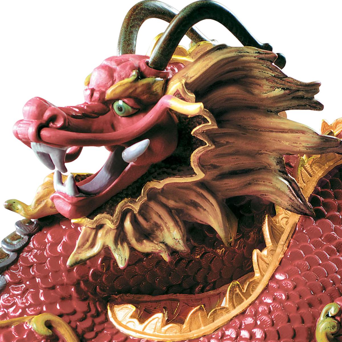 Der Drache gilt in der fernöstlichen Kultur als Symbol für Stärke, aber auch Schutz und Glück. Er vertreibt böse Geister und gibt denjenigen Schutz, die einen Drachen besitzen. Damit ist diese außergewöhnliche Skulptur "Majestic Dragon" von Lladró ein schönes Geschenk für sich selbst oder eine andere Person. Die Figur "Majestic Dragon" kombiniert glänzendes und mattes Porzellan und zeichnet sich durch einen intensiven Rotton aus. Als Highlights veredeln goldene Akzente den eindrucksvollen Drachen.
