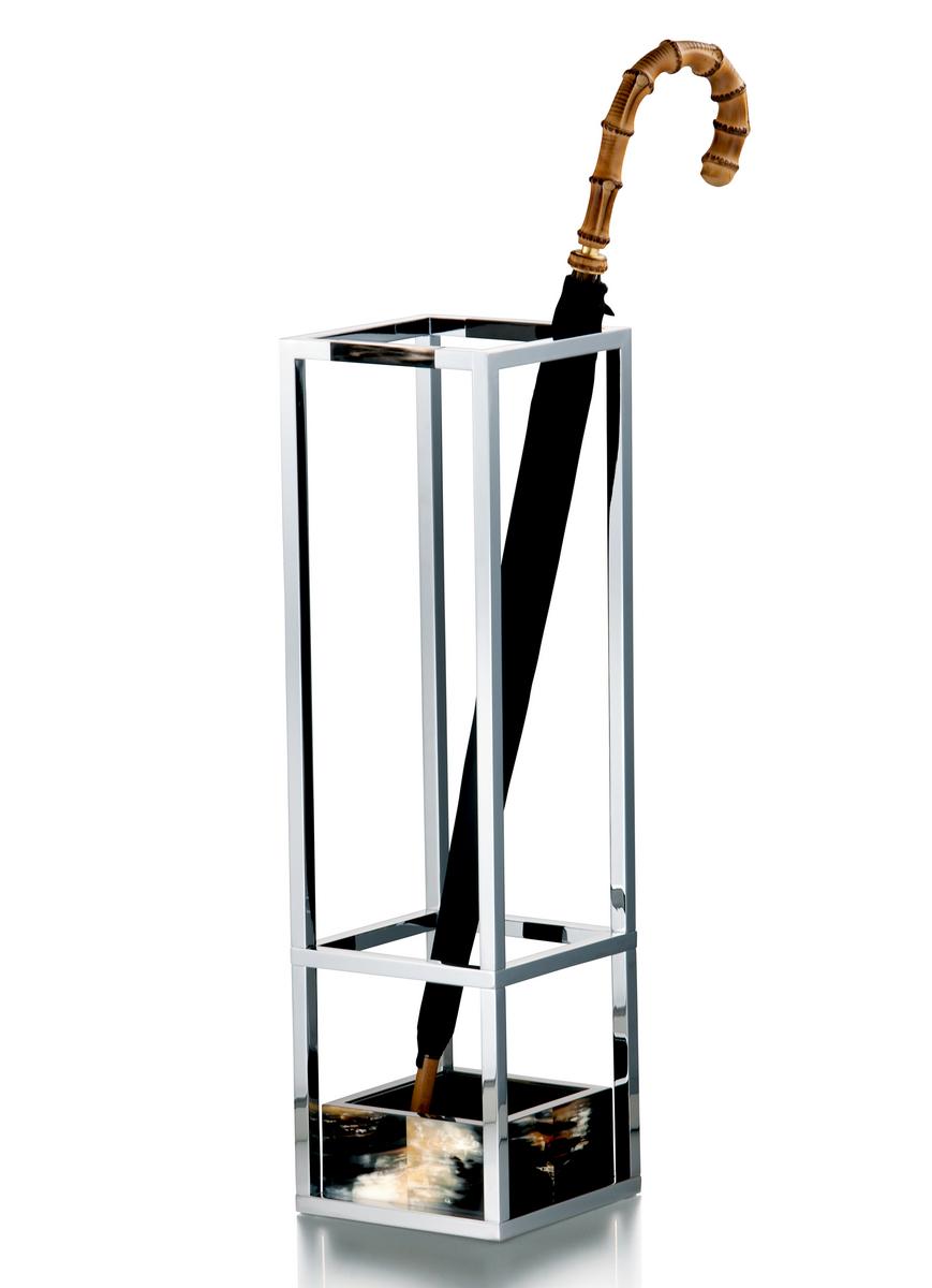 Der Schirmständer "Pluvio" von Arcahorn aus Edelstahl und elegant gemasertem Büffelhorn erfreut uns mit unübertrefflicher Eleganz.