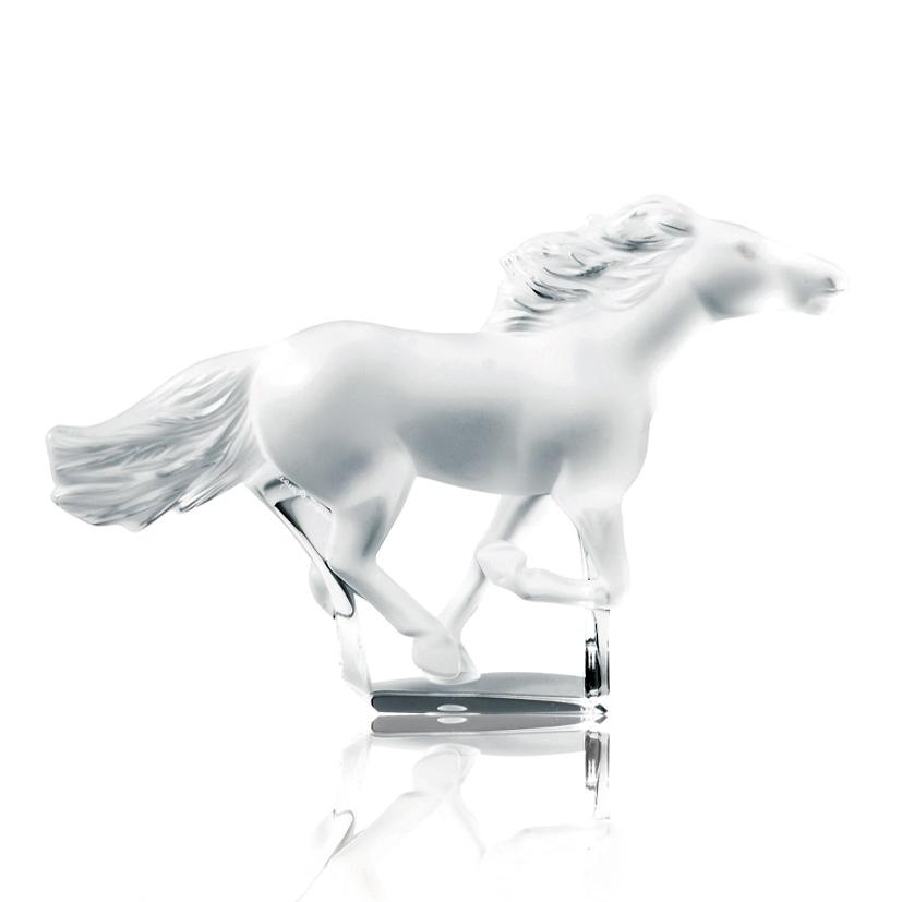 Kraftvoll und mit wehender Mähne galoppiert die Pferdeskulptur "Kazak" von Lalique. Die Marke Lalique steht für Haute-Couture-Kristallglas und ist bekannt für ihre einzigartigen Glaskreationen. In die Reihe der außergewöhnlichen Kunstobjekte aus Kristallglas reiht sich auch das dekorative Pferd "Kazak" ein.