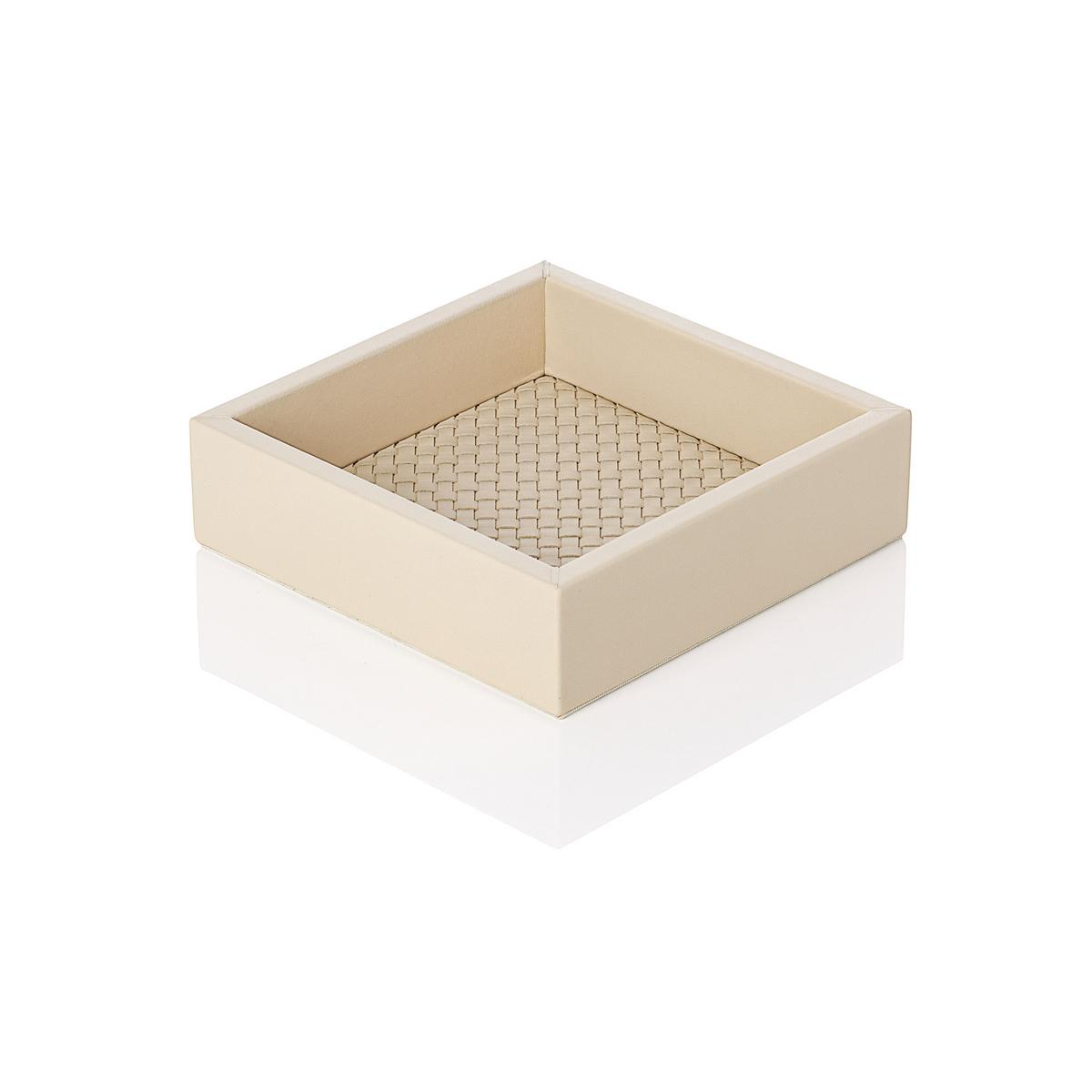Leder Vide-Poche "Milano", quadratisch klein, elfenbein von Riviere