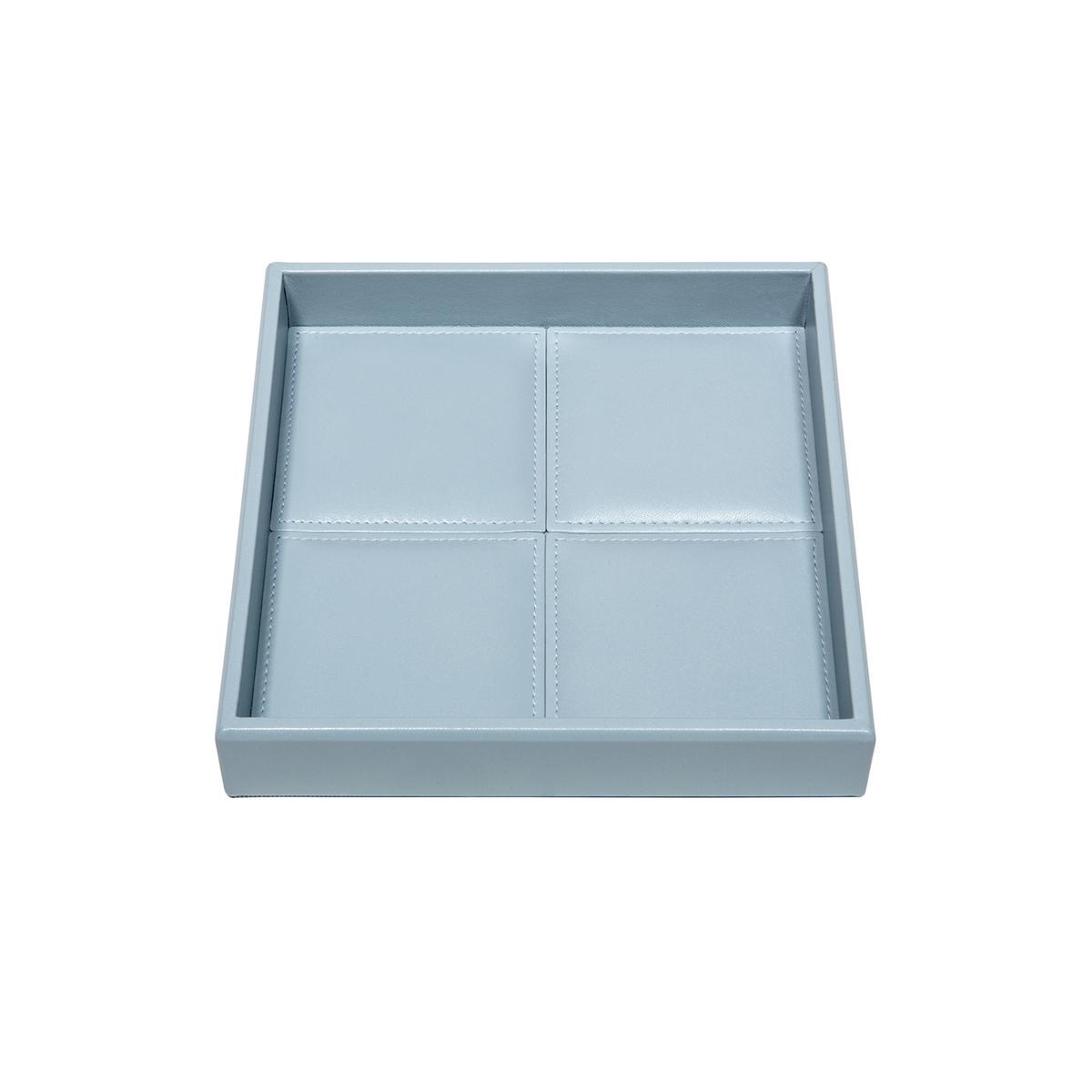 Leder Vide-Poche "Stitches" quadratisch, azurblau von Riviere